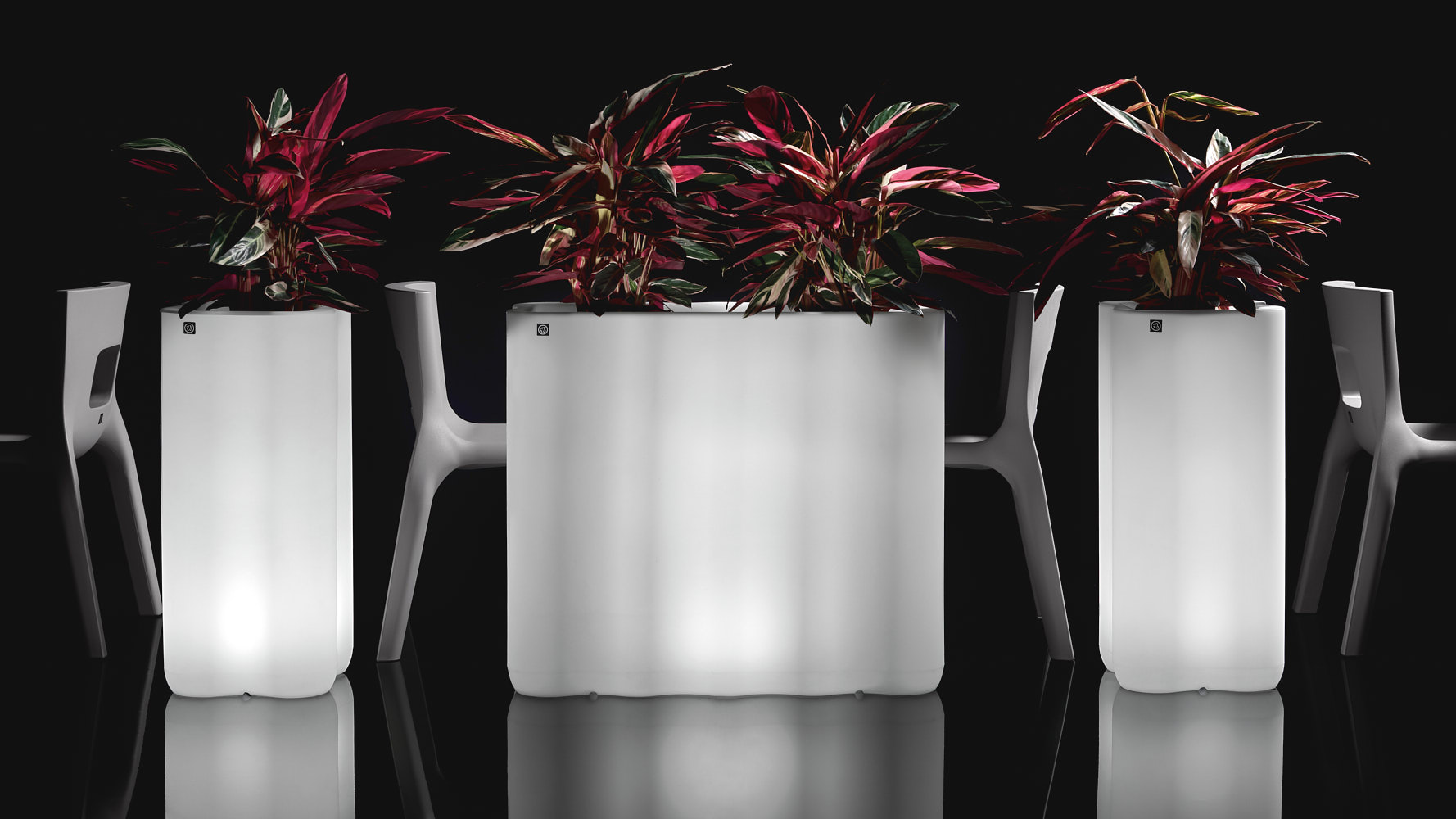 The flowerpot and the column, in their illuminated version, add a further element of charm, transforming every environment with a touch of light. They are available with white LED light with cable and with RGBW battery kit with remote control.