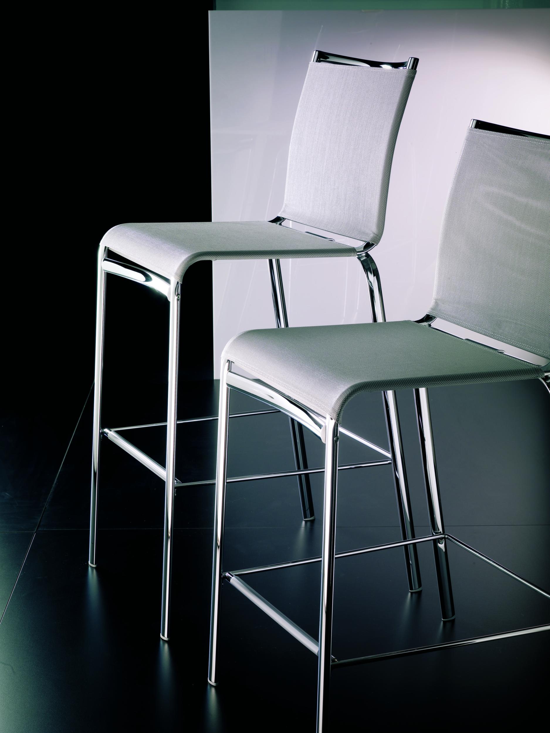 The Net stool has a lacquered steel frame, and the seat and backrest are made of Texplast or Soft Texplast, a durable and breathable plastic mesh material. The Net stool is a comfortable, lightweight, yet elegant chair, suitable for kitchens and spaces such as bars and restaurants. Also available in an outdoor version.