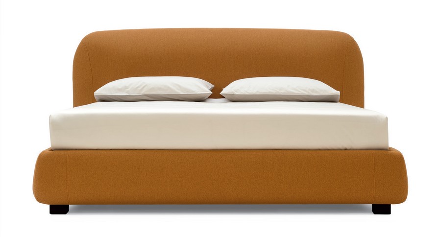 Noa is a sculptural bed, with an organic volume, inspired by rocks sculpted by the wind. The headboard is soft and voluminous, and its simplicity reveals the three-dimensional effect also enhanced by the stitching present on the curved surfaces. The model is available with three variants of wooden foot or with a variant of metal foot, with the possibility of choosing the aesthetics and height from the ground that you like best. Noa is available with a fixed base or with a storage compartment. Can be made with fabric or leather covering.
