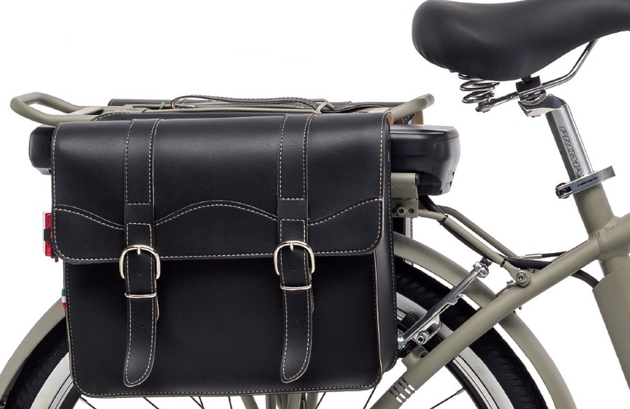 Eco Leather Bag by World Dimension. Pair of side bags to be placed on the appropriate luggage rack of your bicycle. Available in: Black. Compatible with all e-bike models of the World Dimension line.