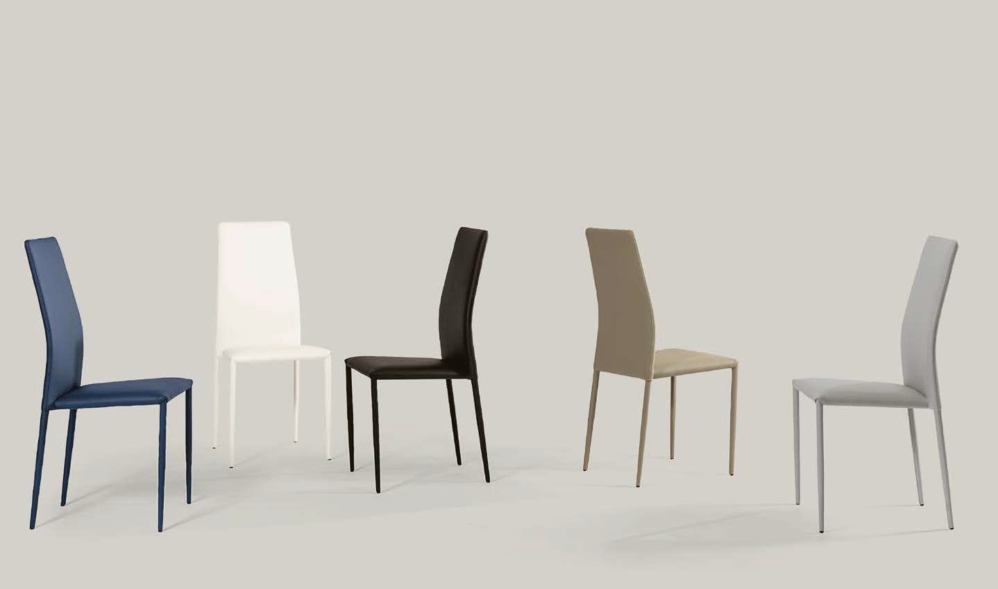 Renee chair with steel structure fully padded and covered in numerous finishes.