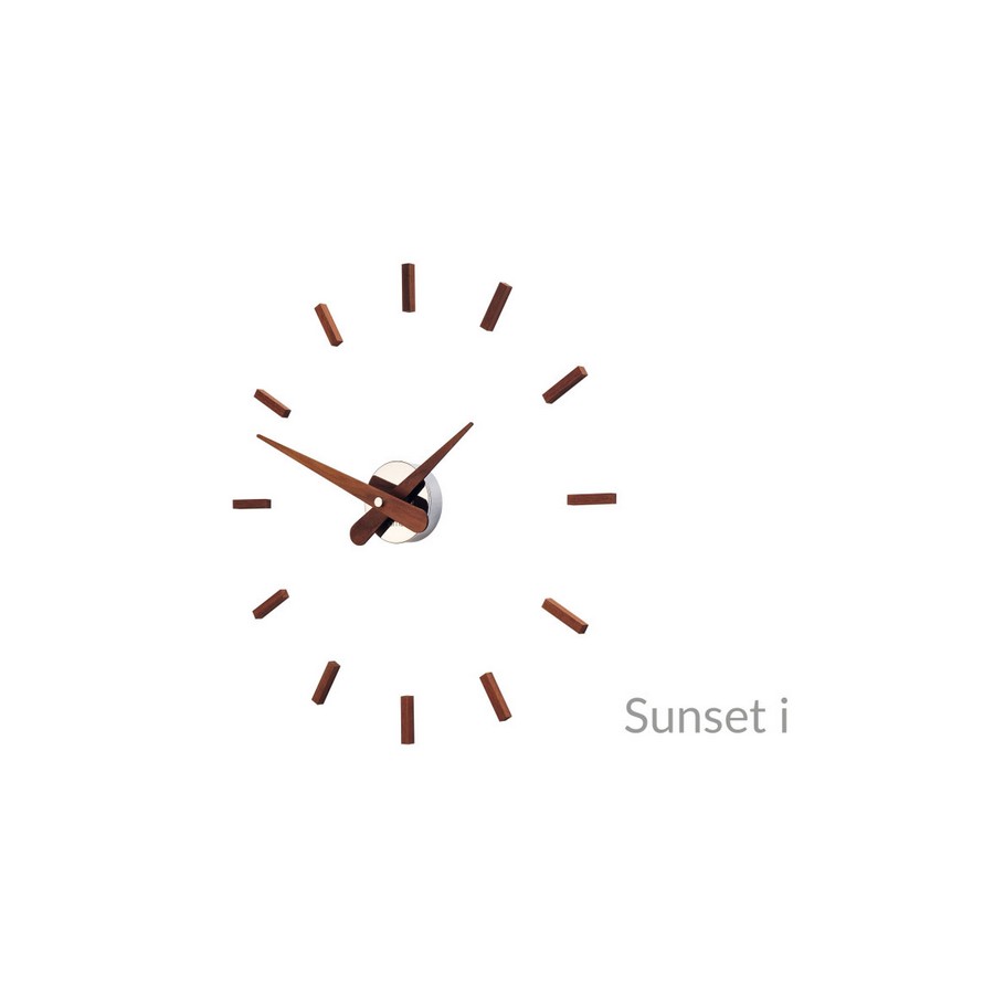 Sunset wall clock of the Spanish brand Nomon, handmade with a case of your choice between chromed steel, wood or graphite finish steel and walnut hands and time signals. The watch works with the German UTS mechanism and represents simplicity and linearity in its shape and structure. All Nomon watches are handmade with innovative techniques, guaranteeing absolute quality thanks to the raw materials used and the high competence and professionalism of the company.