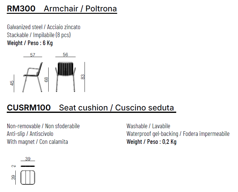 CUSRM100 cushion with magnet cm: L. 39 x D. 39 x H. 2