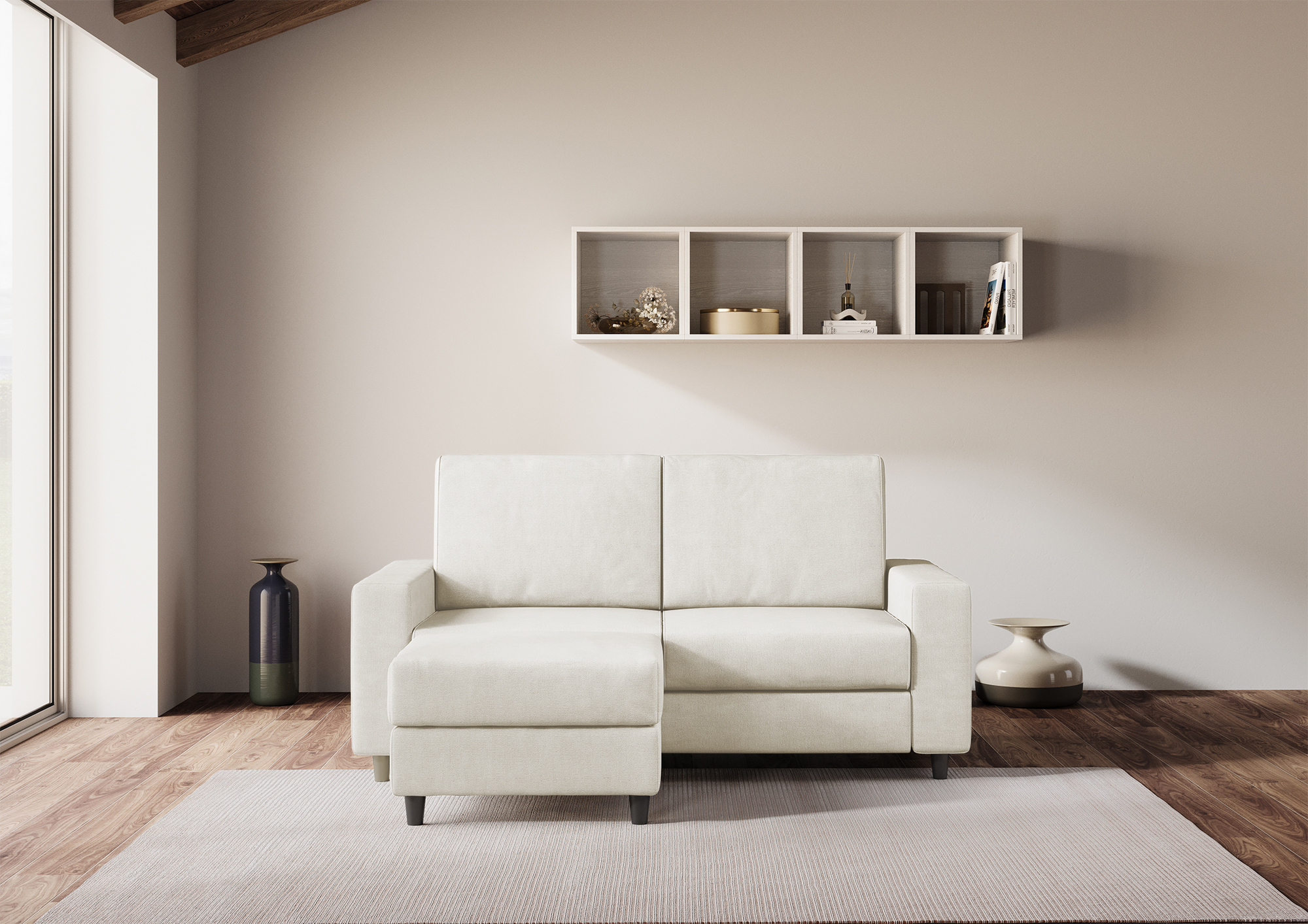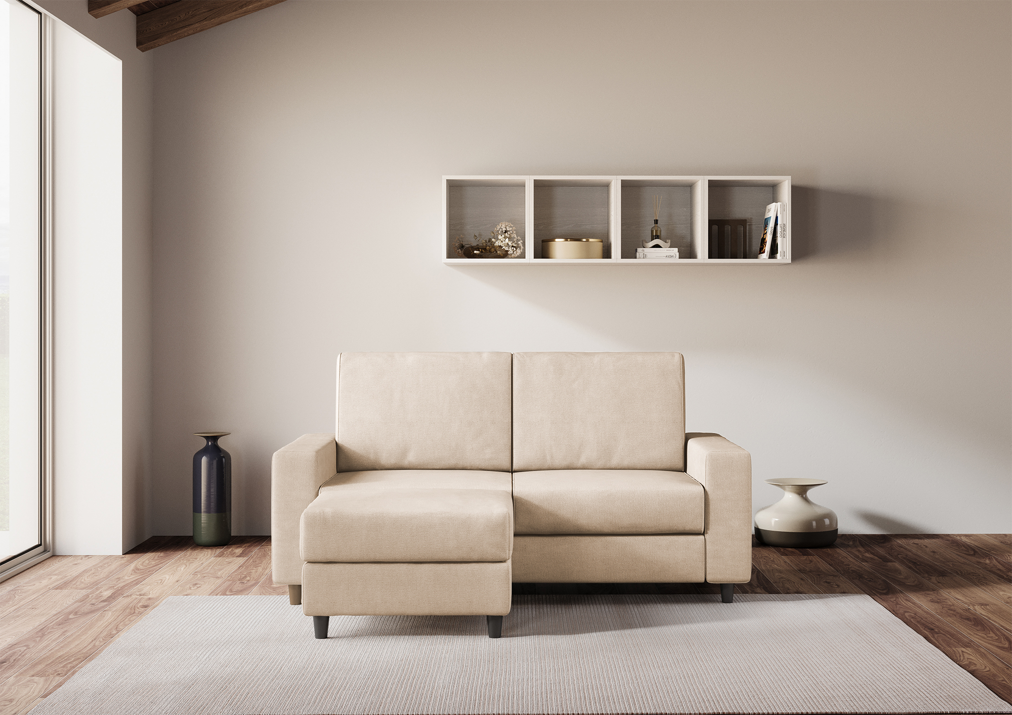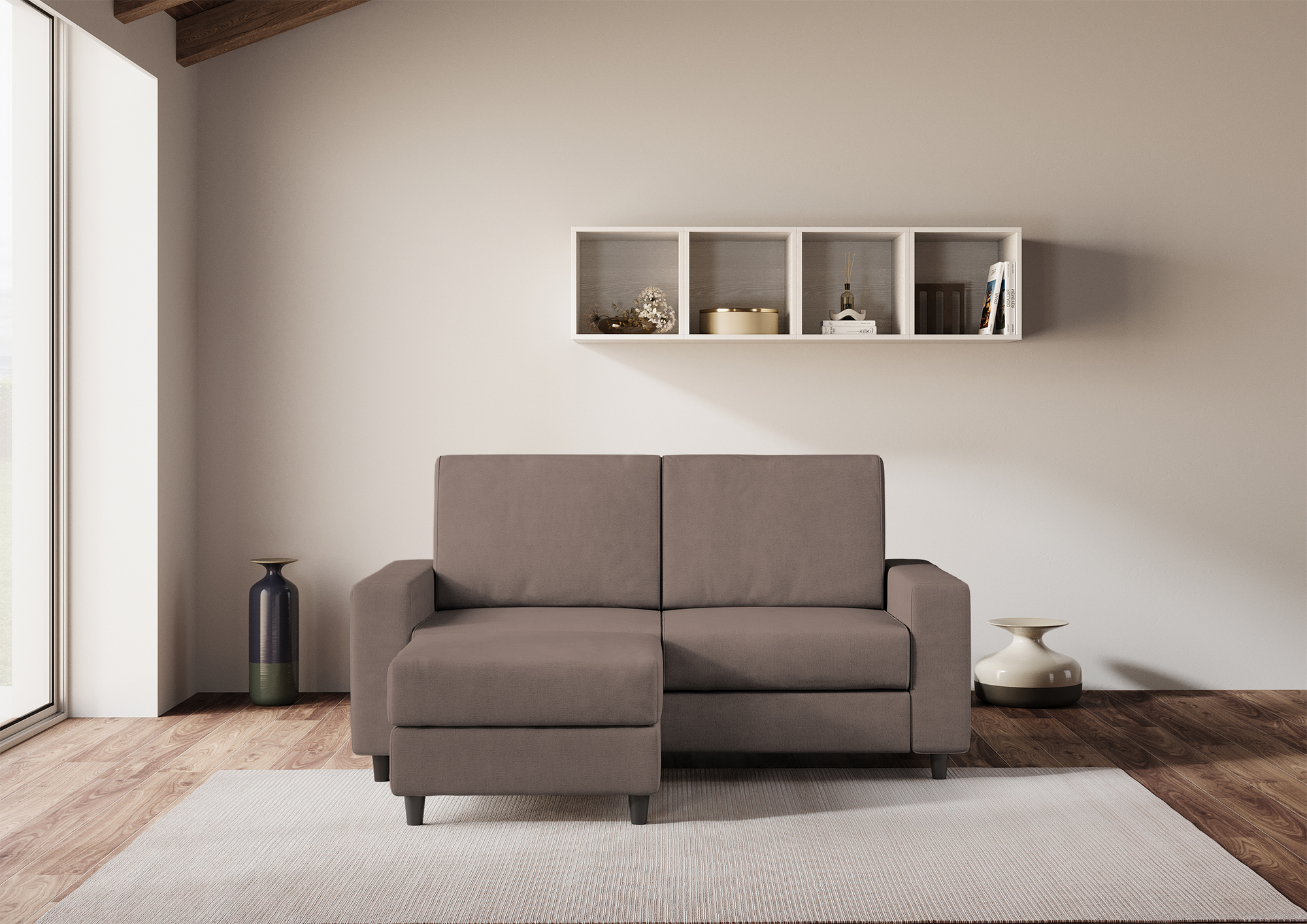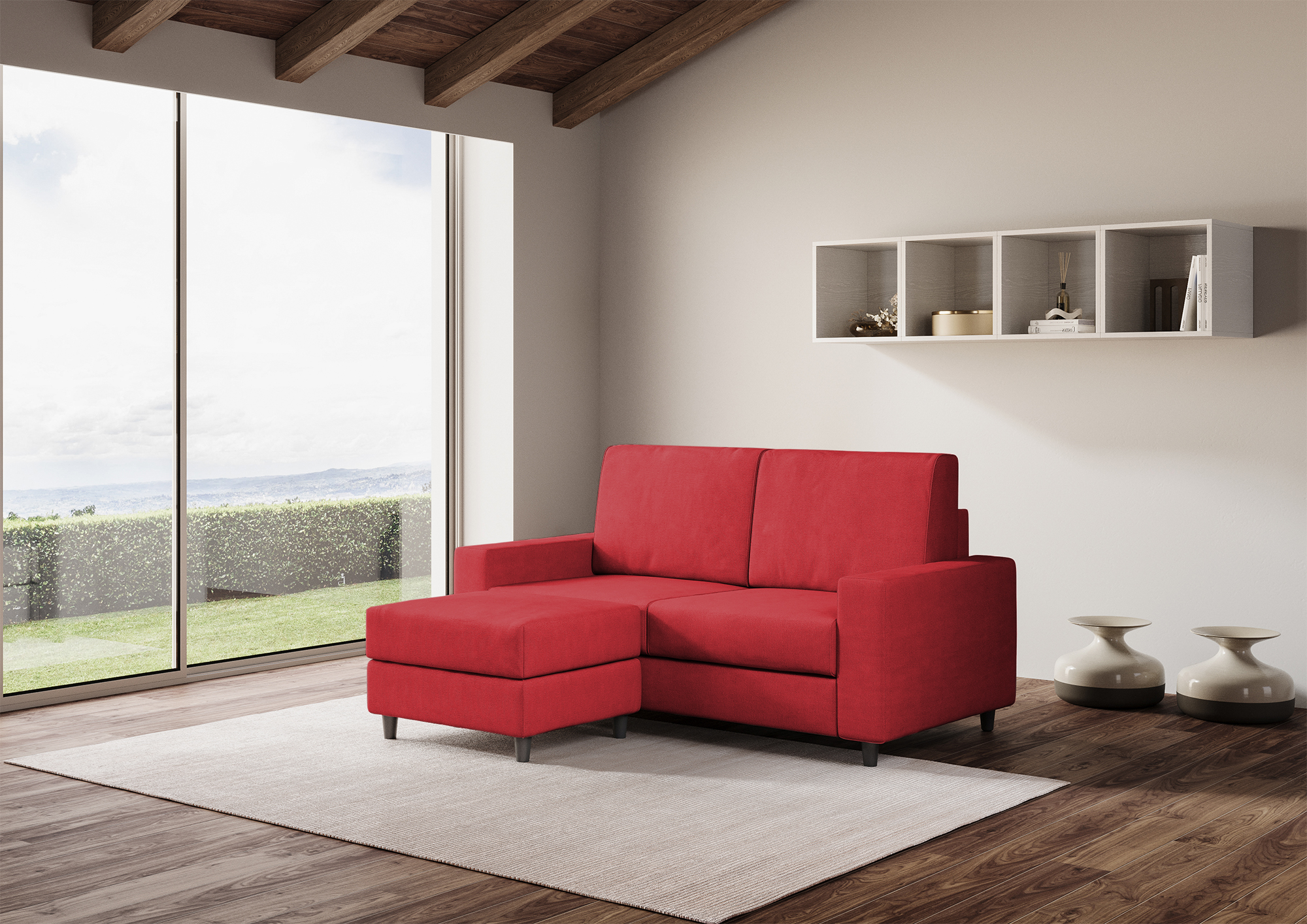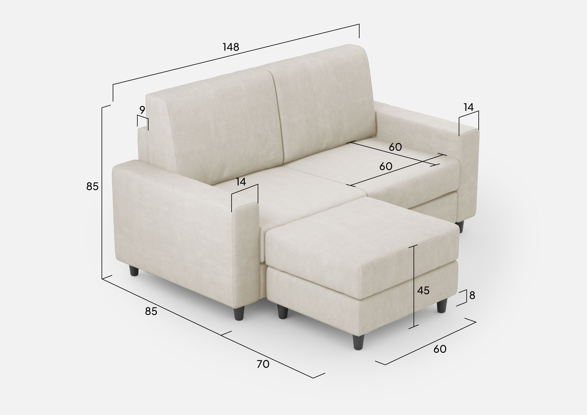 Sakar 2-seater sofa with pouf: comfort and style for your living room Are you looking for a sofa that offers you maximum comfort and design? Discover the Sakar 2-seater sofa with pouf, the ideal solution for furnishing your living room with elegance and practicality. The Sakar sofa has a large and comfortable seat, with high-density foam padding that guarantees optimal support. The pouf is versatile and can be positioned to the right or left of the sofa, or moved wherever you prefer. You can use it as a footstool or as an extra seat when you have guests. The pouf has the same covering as the sofa, creating a harmonious and coordinated effect. The Sakar sofa has a modern and minimalist design, with clean lines and versatile colors. It adapts to any environment and decor, giving a touch of class to your living room. Order the Sakar 2-seater sofa with pouf now and enjoy moments of relaxation and conviviality with your family and friends.