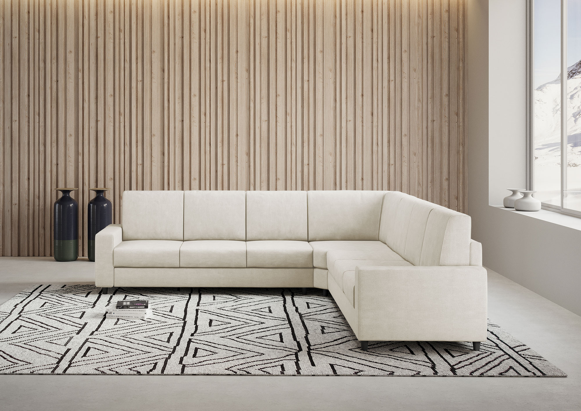 Sakar 7-seater corner sofa, the ideal complement to enrich your living room with style. This sofa offers an impeccable mix of comfort, aesthetics and functionality, specially designed to offer you an unparalleled relaxation experience. Its superior quality seat, made with excellent quality foam, guarantees you exceptional comfort, enveloping you in an atmosphere of pure relaxation thanks to its softness and warmth. The modern and minimalist design of the Sakar sofa fits perfectly into any furnishing style. Its simple shapes and sober colors give a touch of timeless elegance to your living room. In addition to providing a comfortable place to relax, this sofa offers generous space to welcome friends and family, allowing you to enjoy pleasant moments of sharing and create a welcoming atmosphere for your social gatherings.