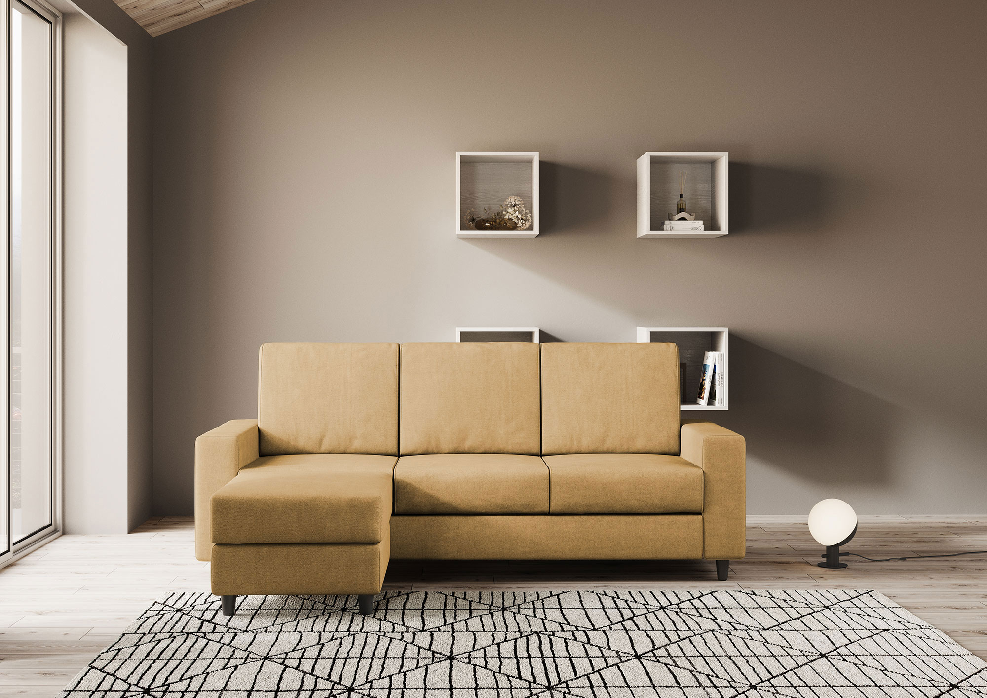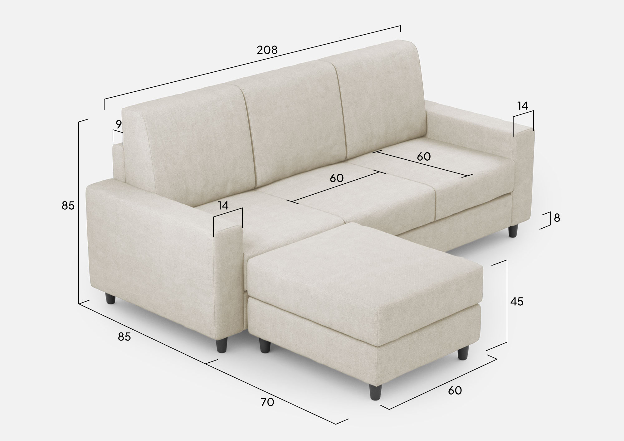 Add a touch of style and comfort to your living room with our Sakar 3-seater sofa, complete with a practical ottoman. Buy our elegant and comfortable sofa online to create a welcoming, sophisticated and functional environment in your home. The seat of the Sakar sofa guarantees exceptional comfort thanks to its uniform distribution of weight on the cushion, ensured by contact with the backrest. You will be able to relax comfortably and enjoy pleasant moments of rest without any discomfort. Made with high-quality materials, including a sturdy frame and high-density foam padding, this sofa offers long-term durability and comfort. You will be able to enjoy your Sakar sofa for years without compromising its elegant appearance and comfortable performance. The elegant and modern design of the Sakar sofa adapts easily to any environment and furnishing style. The clean lines and minimalist look add a touch of sophistication to your living room. Furthermore, the colors of the coverings are versatile and easy to match with the other furniture present. The pouf, with the same covering as the sofa, can be positioned freely to act as a footrest or additional seat when you have guests, offering greater flexibility and hospitality. It is equipped with simple and invisible fixings that allow it to be locked to the desired seat, guaranteeing stability. Alternatively, you can quickly move it to different positions, depending on your needs and available space. The Sakar 3-seater sofa with ottoman is the ideal choice for those looking for maximum comfort, style and practicality in their home. By purchasing our Sakar sofa, you can create a welcoming environment for you, your family and your friends.