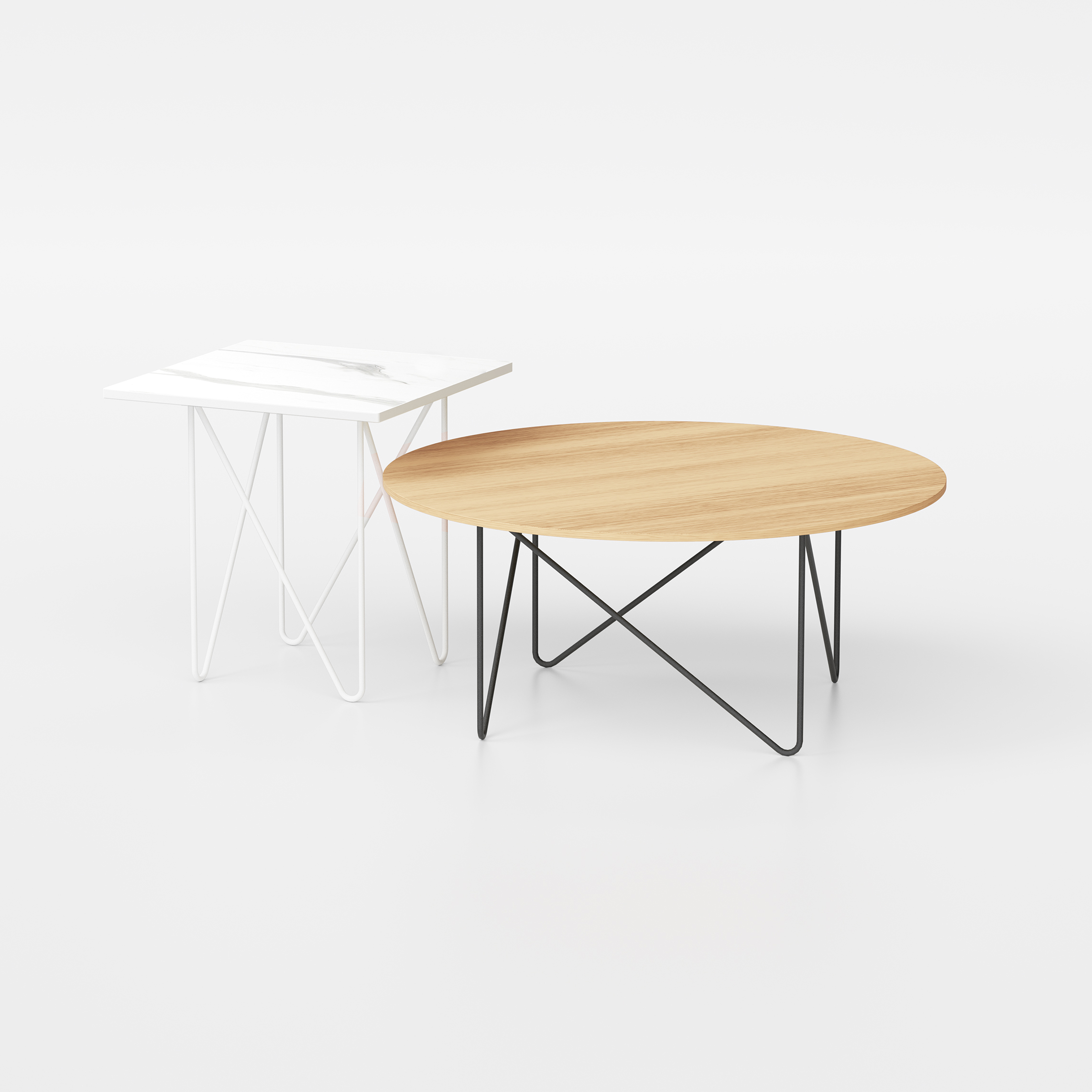 The Shape coffee table series by Pezzani is made of painted steel with Pezzani's special sandblasted finish. The frame, matching the top or laminate, features a distinctive geometric design. Speaking of geometric shapes, the top is available in a round or square version. The coffee table is also available in various heights and colors. The refined design enhances your living room and surprises with its unexpected functionality.