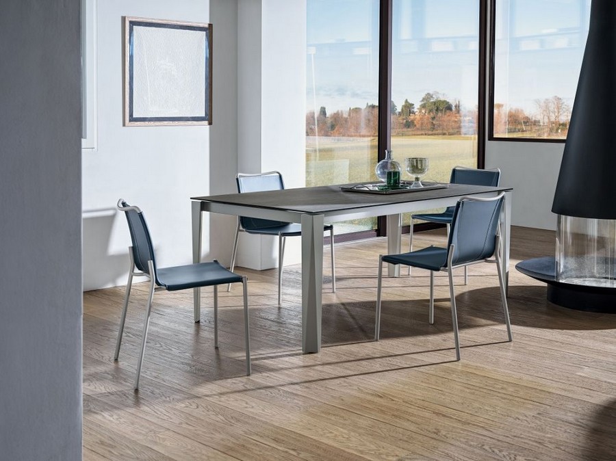 Chair with and without armrests and lacquered steel frame, padded monocoque and covered in leather. A timeless classic, the leather chair with an airy appearance but with great character, able to dress any interior, from the living room to the office area.