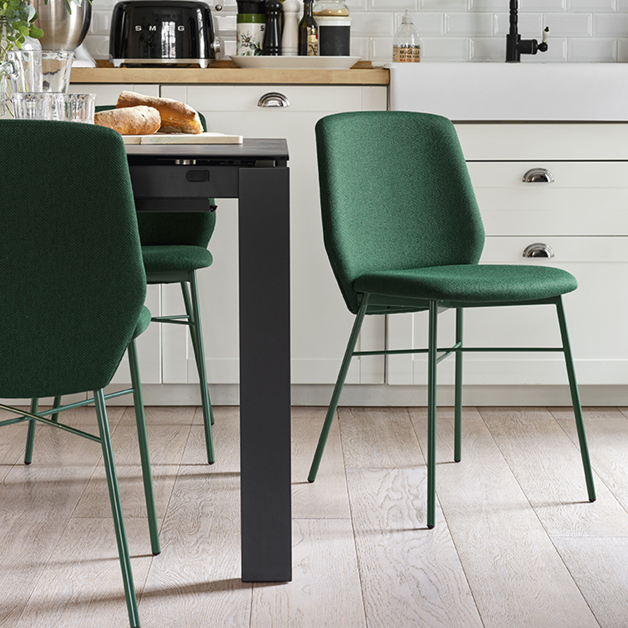 Sibilla CB1959 / CB1959-A chair with metal frame and plywood seat covered in regenerated leather with matching visible stitching or in padded version and covered in non-removable fabric. Modern and functional, it is perfect for the dining area.