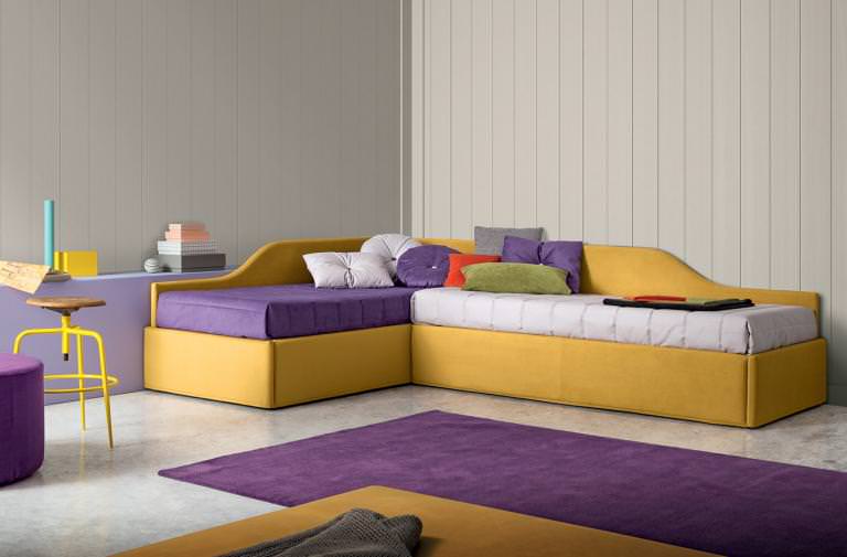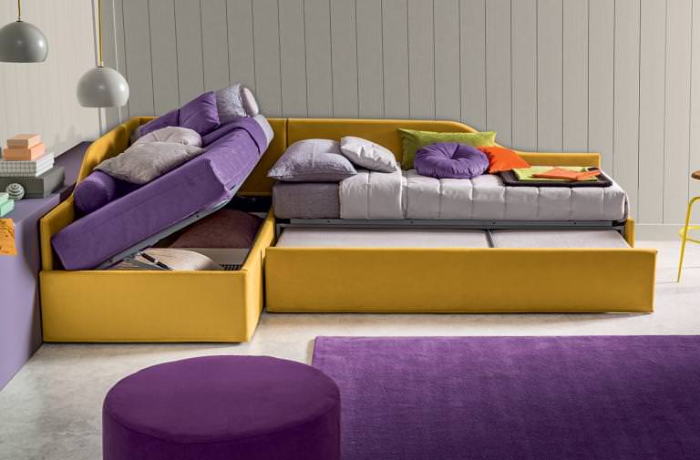 Harry is a practical single bed that offers a wide range of single beds and also a corner composition that allows the use of a space-saving container and a second pull-out bed. Erik can be upholstered in fabric or eco-leather and is completely removable. Very versatile thanks to the compact dimensions it can be used for contract, for private use, in the center of the room or even in bridge cabinets or for furnishing small spaces. The mattressor is included in the price.