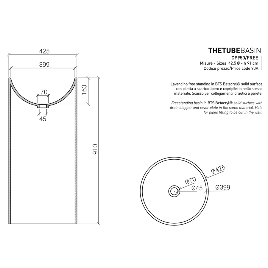 The Tube CP950/FREE sink by Cipì in Istone free standing