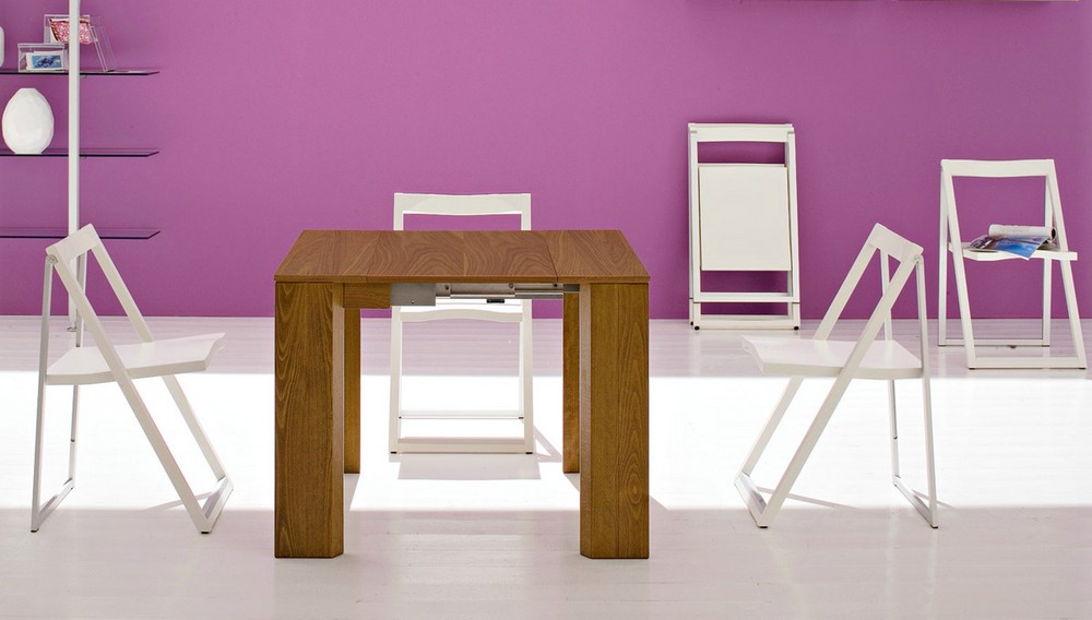 Folding chair model SKIP: minimal design, wood and aluminum structure, practical and lightweight. The unmistakable lines of this chair are born from the union between the front part in solid beech wood and the back part in aluminum. The seat is in multilayer beech. When closed it takes up very little space and can be conveniently stored on the special FLAT wall hook. Versatile, suitable for the kitchen and small spaces, it is perfect for quickly seating guests at the table. Choose it in the configuration you prefer.