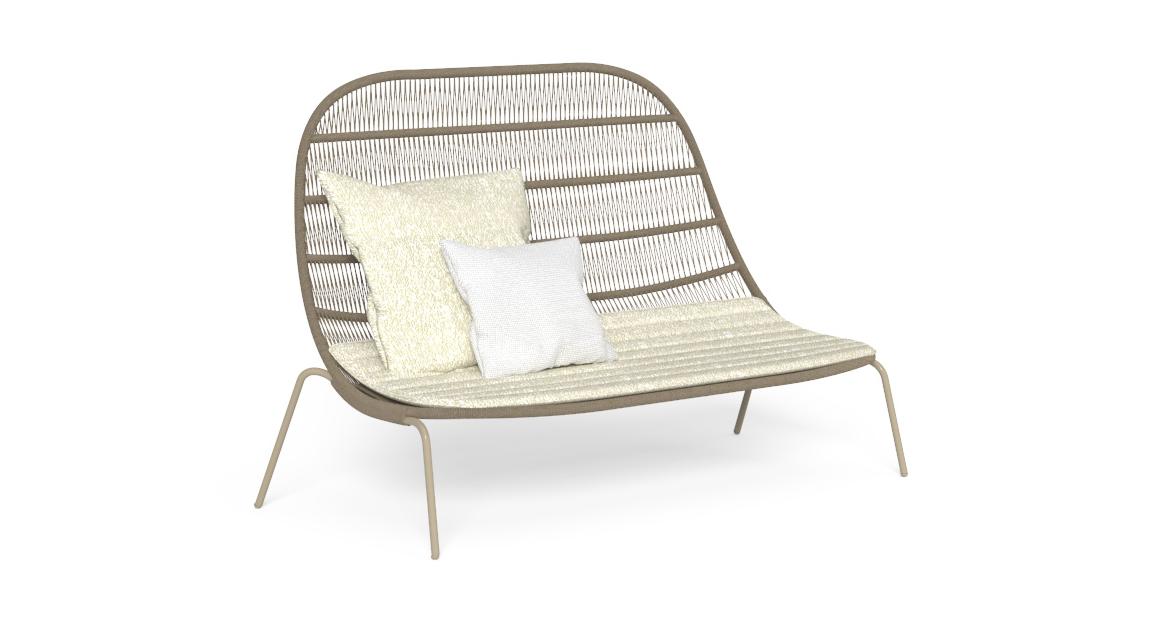 • Painted aluminum in TORTORA / Cushion fabric in LIGHT BEIGE / Ropes in SAND color - A13 / C56 / R22