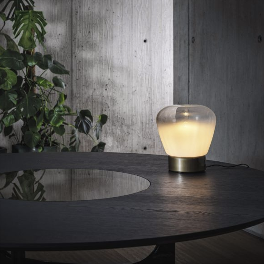 Stone table lamp by Bontempi in white shaded glass with steel base.