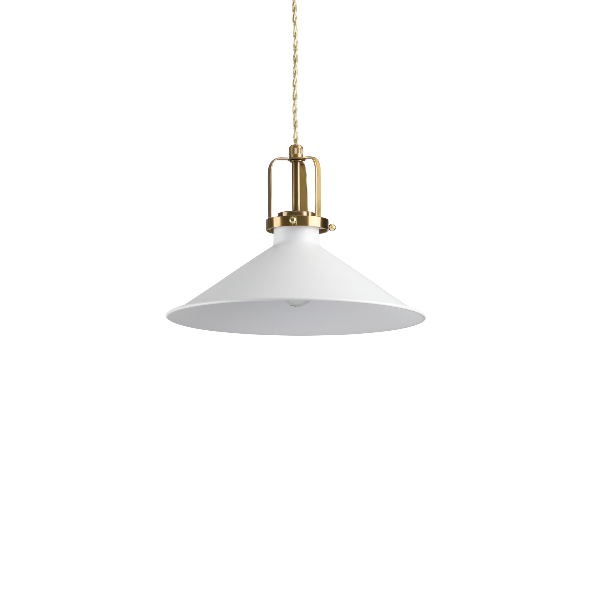 ERIS-3 SP1 white suspension lamp by Ideal Lux with metal frame with white painted ceiling rose and diffuser, satin gold finish details. Braided electrical cable with fabric covering. Bulb not included.