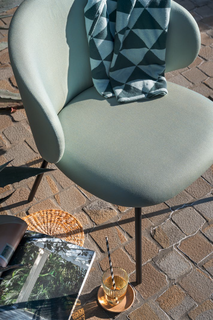 Tuka CB2114-E outdoor armchair by Connubia. Tuka has a metal tube structure treated and painted for outdoor use. The seat and the large enveloping backrest are made with draining padding. The upholstery, in water-repellent Sunbrella® fabric, offers protection from UV rays, anti-fading, is anti-mold and anti-stain. You will be looking forward to inviting friends for a lemonade in the garden!