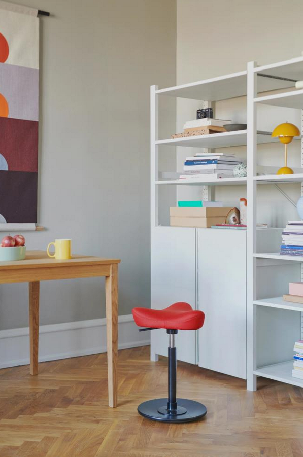 Varier's Move ergonomic chair. Move defines the concept of unconventional seating. The distinctive design is easily recognizable and, above all, functional. It offers the body support and movement in both sitting and semi-standing positions. Available in two different sizes.