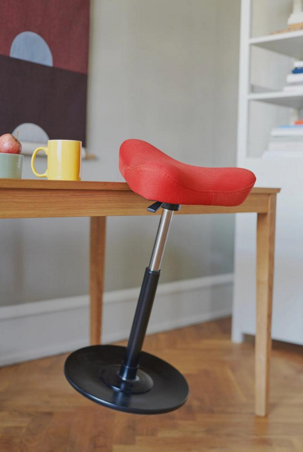 Truly intuitive, the Move chair has a slightly rounded base that allows for smooth, gentle tilting. The saddle seat promotes an upright, dynamic posture that activates and strengthens the core muscles of the abdomen and back. Resting your feet on the floor allows for balance and stability, as well as for easy leaning, twisting, and 360° rotation. The open angle between the upper and lower body improves circulation and boosts energy levels and concentration. Move is the ideal companion for height-adjustable desks or tables. And thanks to its minimal footprint, it's easy to move or store. Rubber base protector included.