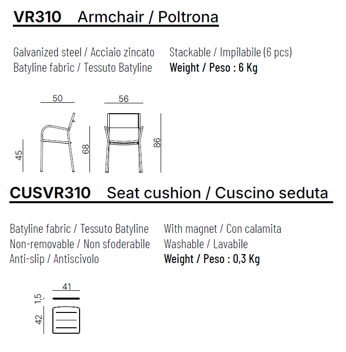 Vera armchair by Vermobil. A simple design that expresses the personality of an armchair with an elegant and timeless silhouette. With its tubular frame, perforated seat, comfortable seat cushion—particularly large and comfortable—and fabric backrest for added comfort, it is enhanced by vibrant color combinations of materials.