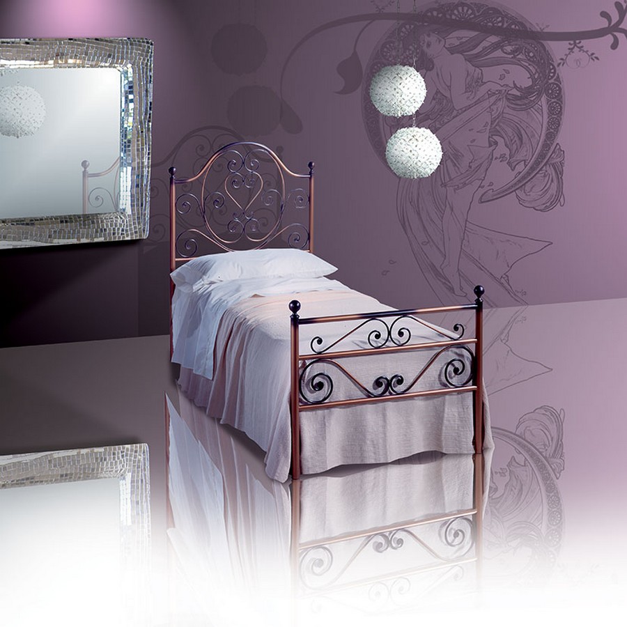 Olimpia Single Bed by Pama Wrought iron beds. A bed available in three different versions: headboard only, headboard with bed frame or headboard and footboard. The bed is available in various finishes. Pama Letti beds differ in the different percentage of iron used in the production phase, passing from a tubular product to another in solid iron. The Olimpia Single model is produced with a 99-75% percentage. With a traditional and retro design, taking up a classic style, this product together with the highest quality materials will create a relaxing and at the same time elegant atmosphere in your bedroom. Network beds size 85x190 cm