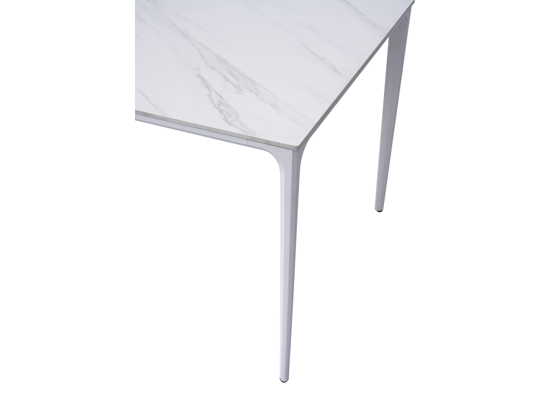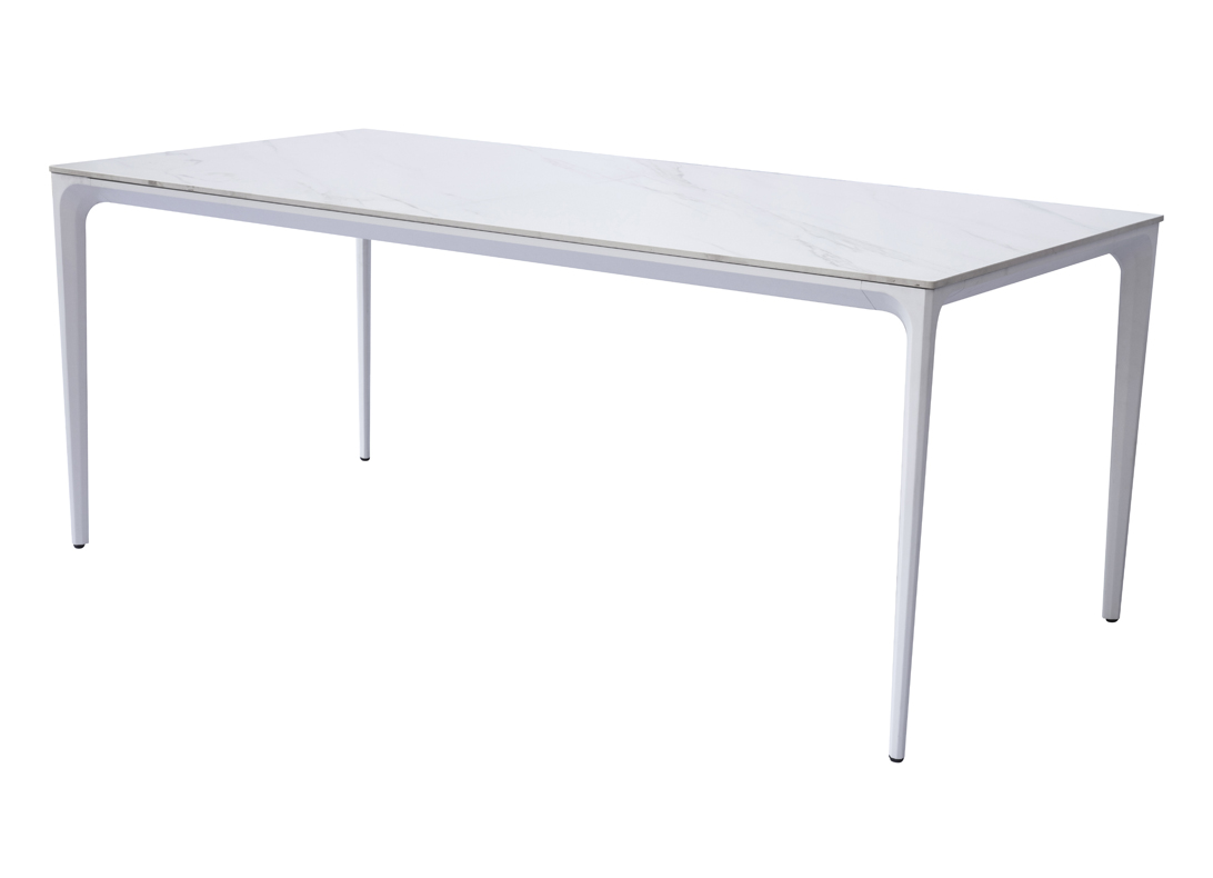 The 180x90 Alghero table is the perfect solution for elegantly furnishing outdoor spaces. The white aluminum frame and marble-effect stoneware top offer durability, style, and practicality for al fresco dining.