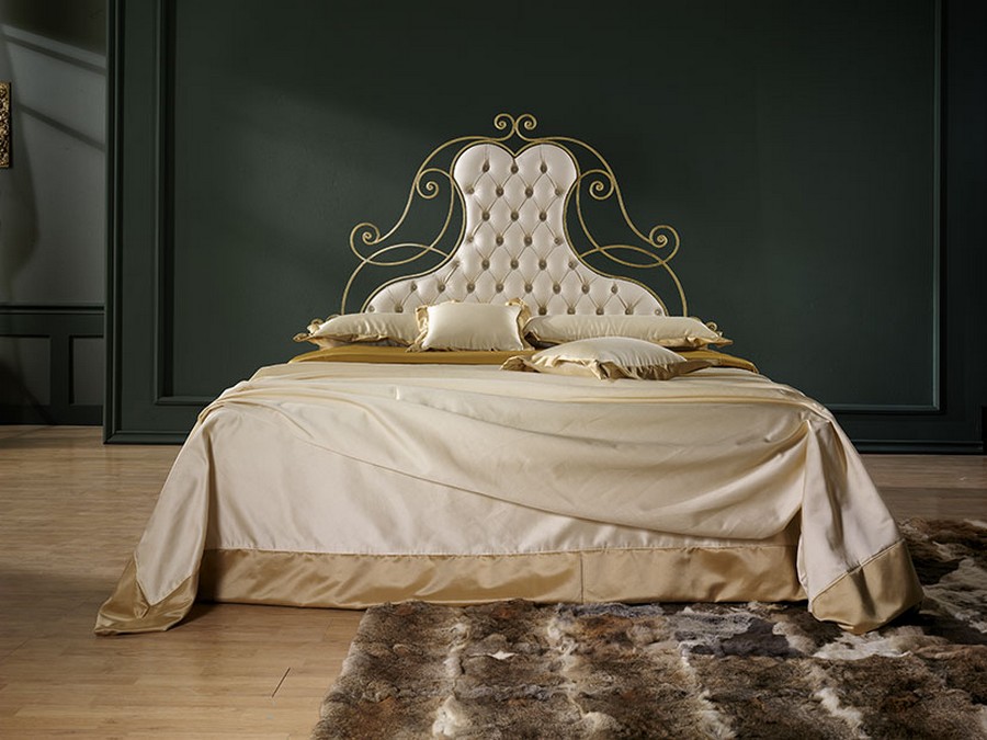 Ginevra double bed by Pama Wrought iron beds. A bed available in three different versions: Headboard only, Headboard with bed frame or Headboard and footboard. The bed can be had in various finishes. Pama Letti beds differ in the different percentage of iron used in the production phase, going from a tubular product to another in solid iron. The Ginevra model is produced with a percentage of 99-75%. A product of elegant design with finishes treated with precision and accuracy capable of giving the surrounding environment a light and relaxing atmosphere in maximum comfort. Possibility of adding a headboard cushion at a surcharge