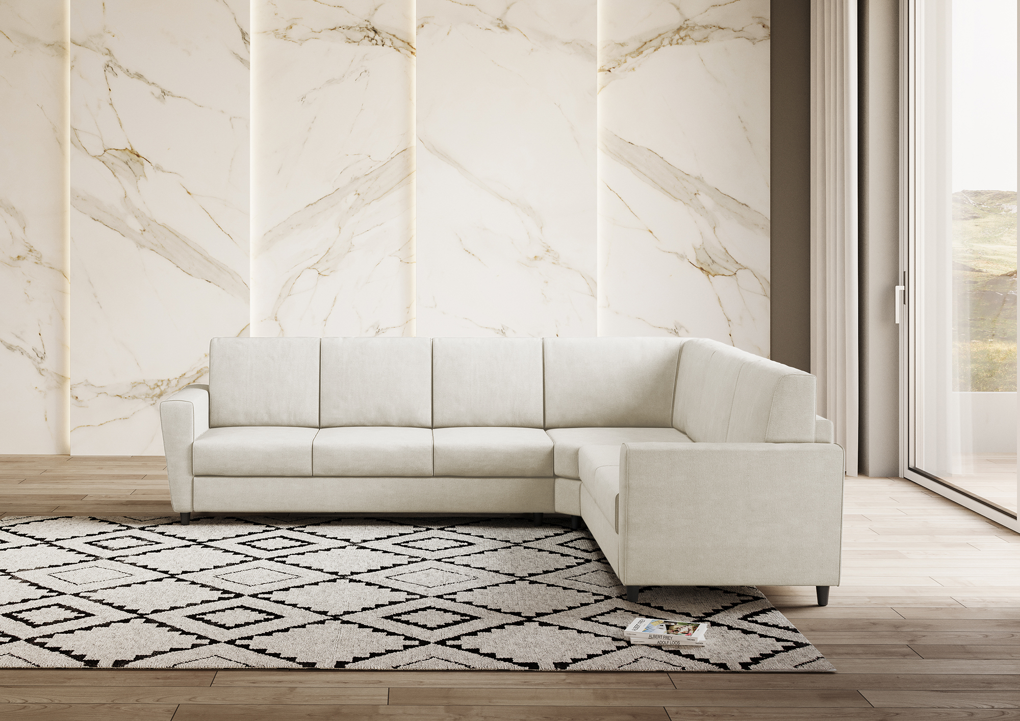If you are looking for a sofa that is comfortable, beautiful, spacious and practical, the Yasel 6-seater corner sofa is for you. This sofa has a soft and welcoming seat, made with excellent quality foam. The design is modern and minimalist, with simple shapes and sober colors that match any decor style. The Yasel corner sofa is ideal for enjoying moments of relaxation and hosting friends and relatives. Don't miss the opportunity and buy the Yasel 6-seater corner sofa, the sofa that combines space and elegance for your living room.