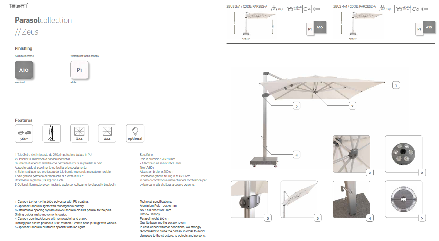 Zeus umbrella from the Talenti Parasol line available in two sizes