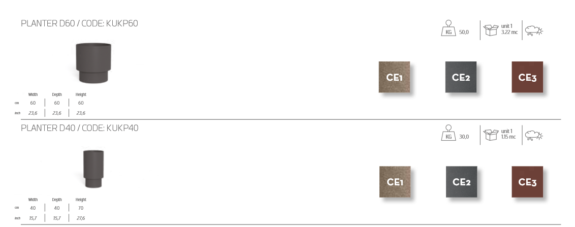 La fioriera Kukà, disponibile in due dimensioni, dalle linee minimali ma rigorose è realizzata in eco cemento ed è formata da un doppio corpo cilindrico che la rende ideale per completare il proprio spazio esterno.