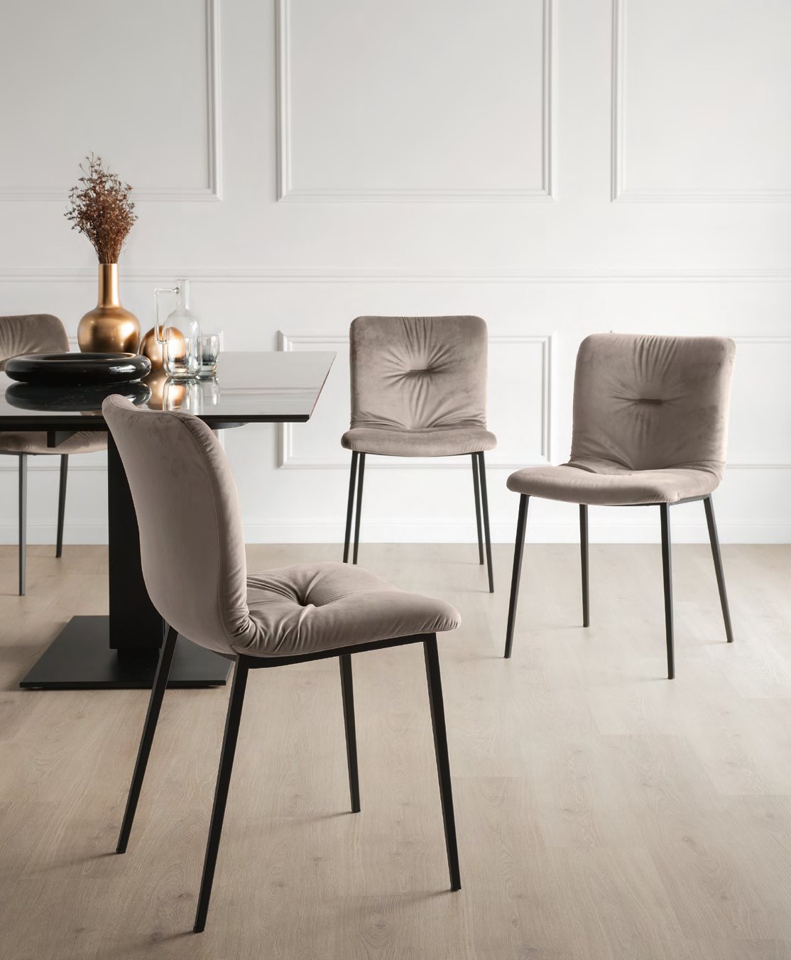 Cette chaise de la famille ANNIE est dotée d'un piètement en métal et d'une nouvelle coque matelassée irrégulière, douce au toucher. Une interprétation contemporaine de la convivialité, idéale pour les espaces de vie et les espaces professionnels. Choisissez votre préférée.