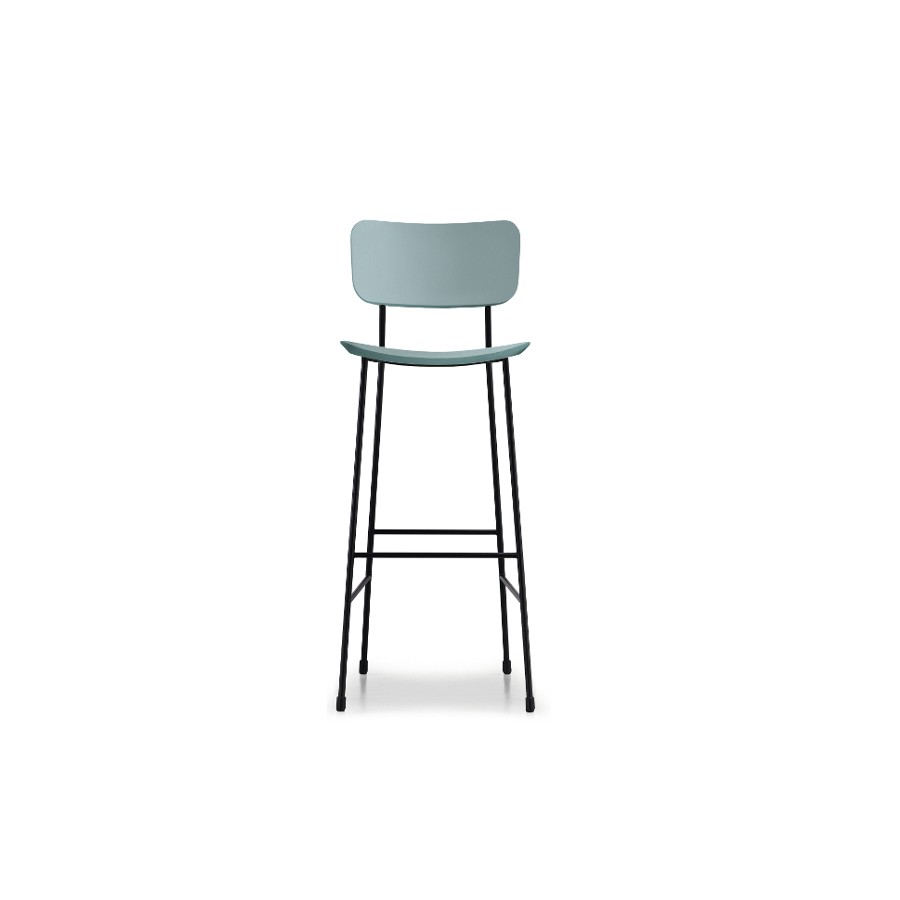 Tabouret Midj à quatre pieds en acier peint, or rose ou nickel noir. Assise en bois ou rembourrée en tissu, éco-cuir, cuir ou cuir. Chaise simple, mais à la fois originale, parfaite pour meubler le salon ou la cuisine.