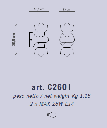 Applique 2 LUMIÈRES DECO' BERIMBAU C2601 par Ferroluce