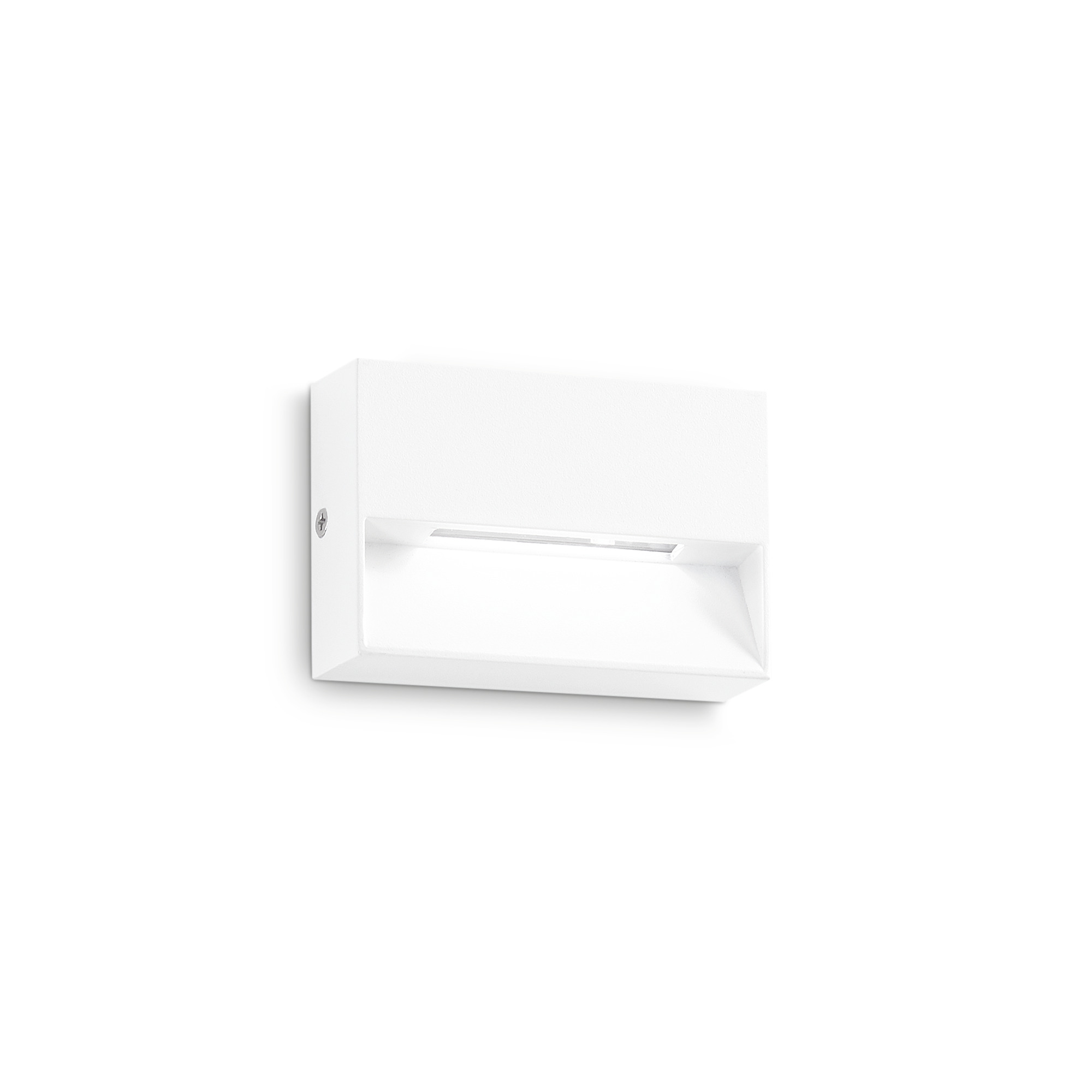 Applique d'extérieur blanche DEDRA AP SMALL d'Ideal Lux avec corps lumineux en aluminium moulé sous pression peint par poudrage. Diffuseur acrylique transparent. Émission de lumière indirecte. Finition blanche. Source de lumière LED incluse.