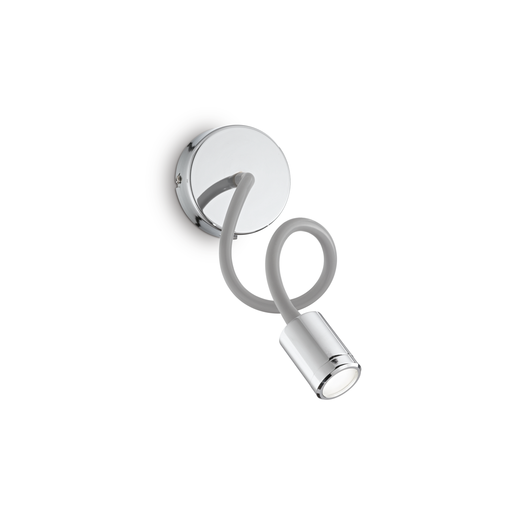 Corps en métal avec bras flexible et réglable recouvert de caoutchouc. Finition grise avec détails chromés. Source lumineuse LED 3000 K, durée de vie de 20 000 heures. Lampe avec interrupteur intégré.
