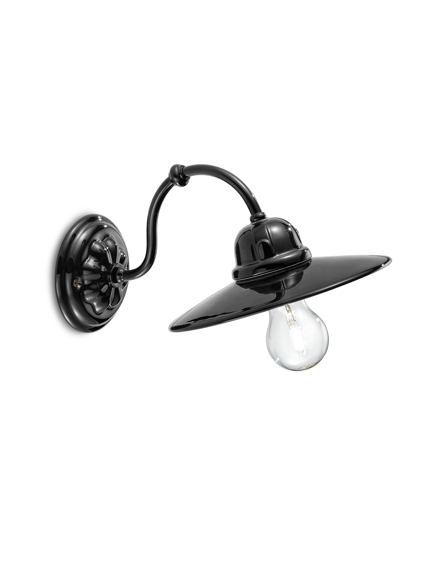 Applique RETRO' B&W C141 de Ferroluce avec plaque en céramique, socle en céramique, monture en laiton, type de peinture : poudre.