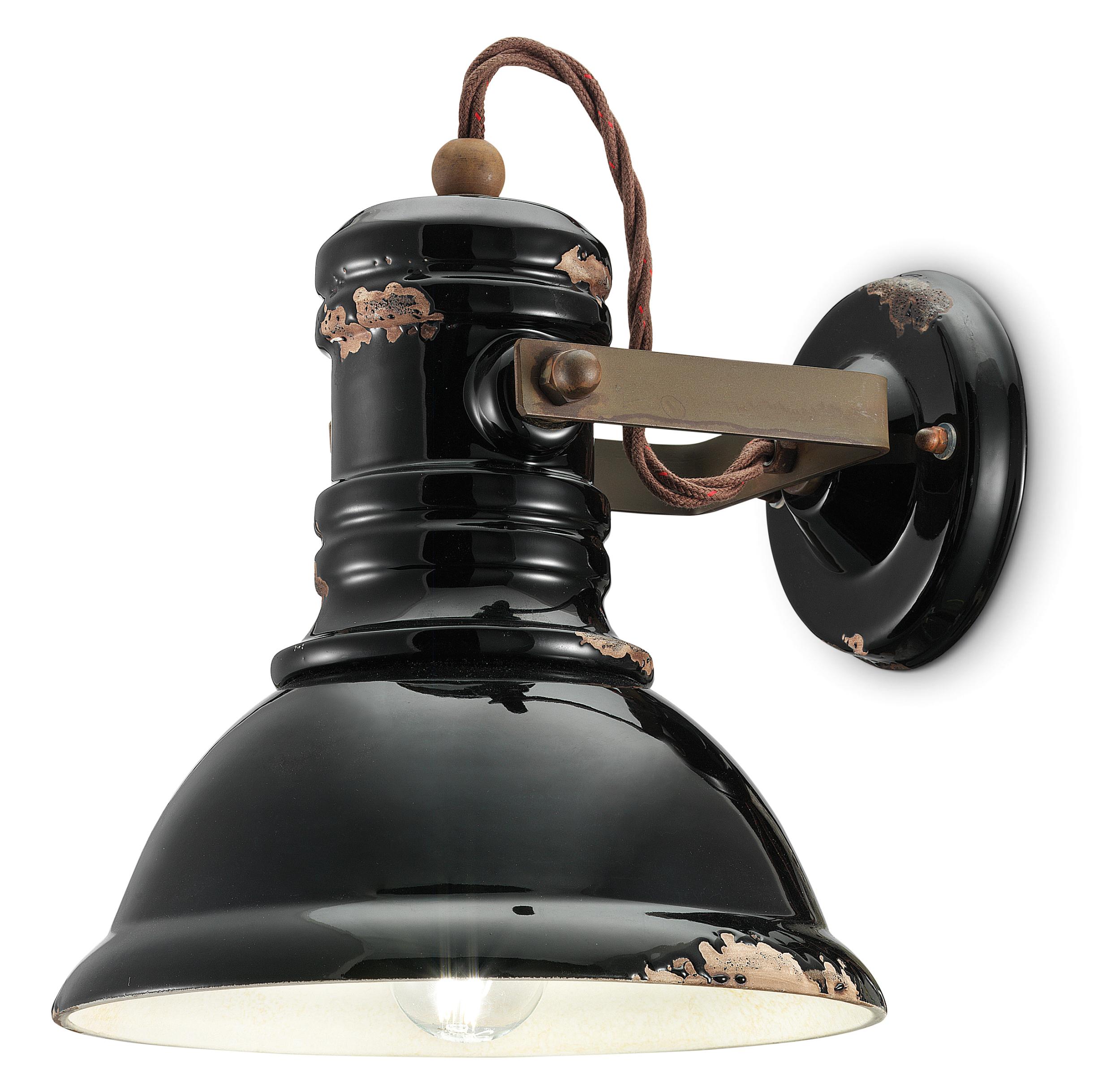 Applique RETRO' INDUSTRIELLE C1693 de Ferroluce. Lampe en céramique avec parties métalliques en fer corten antique.