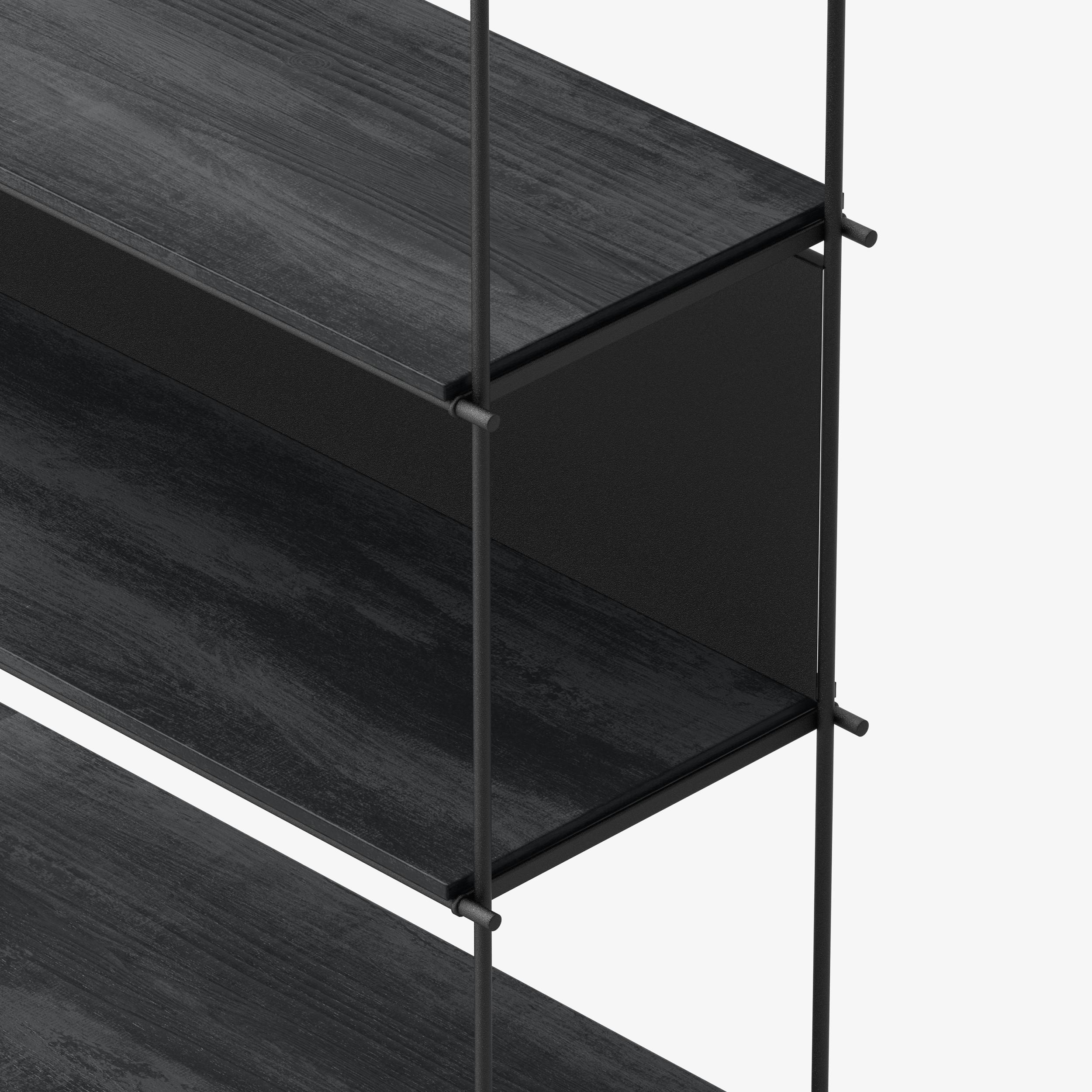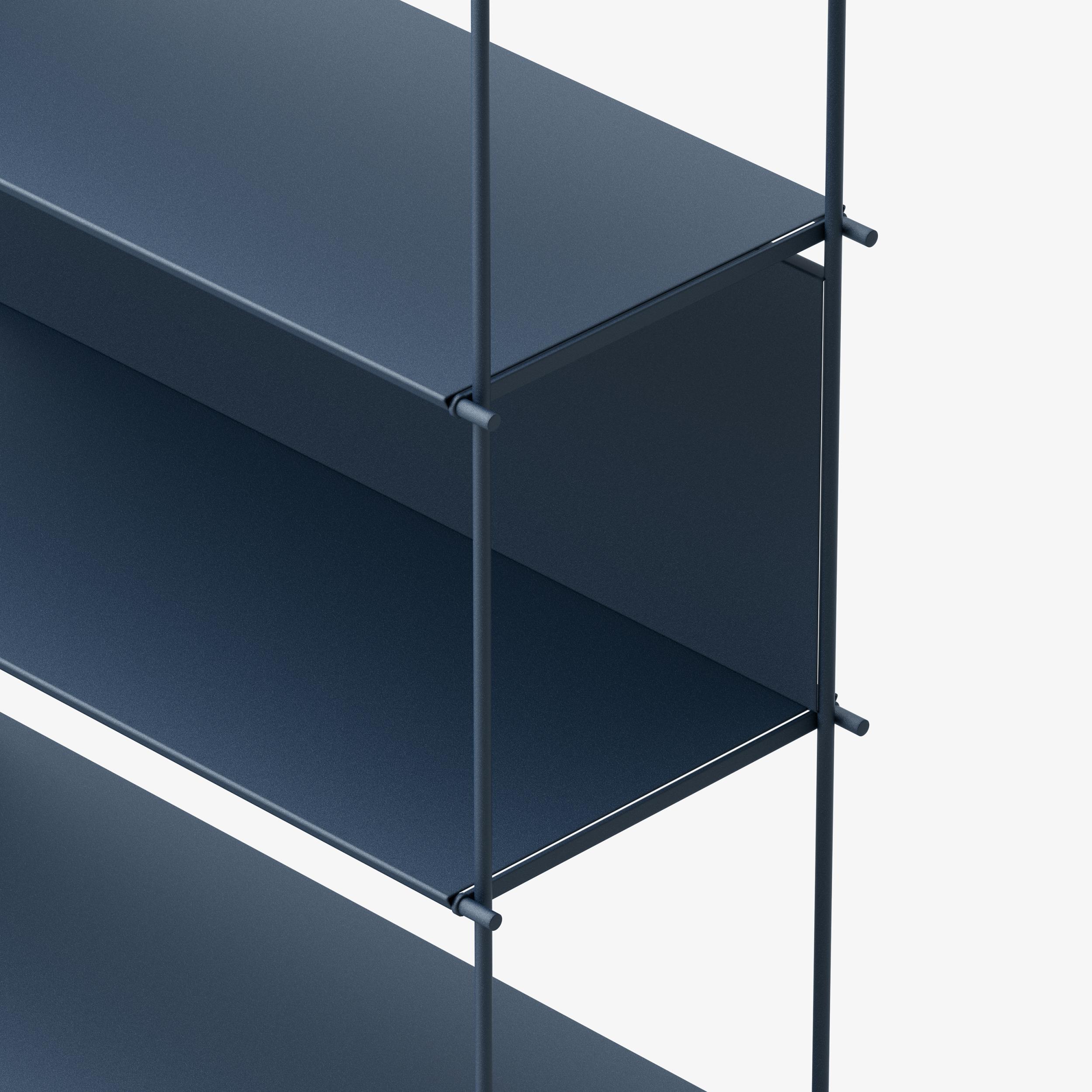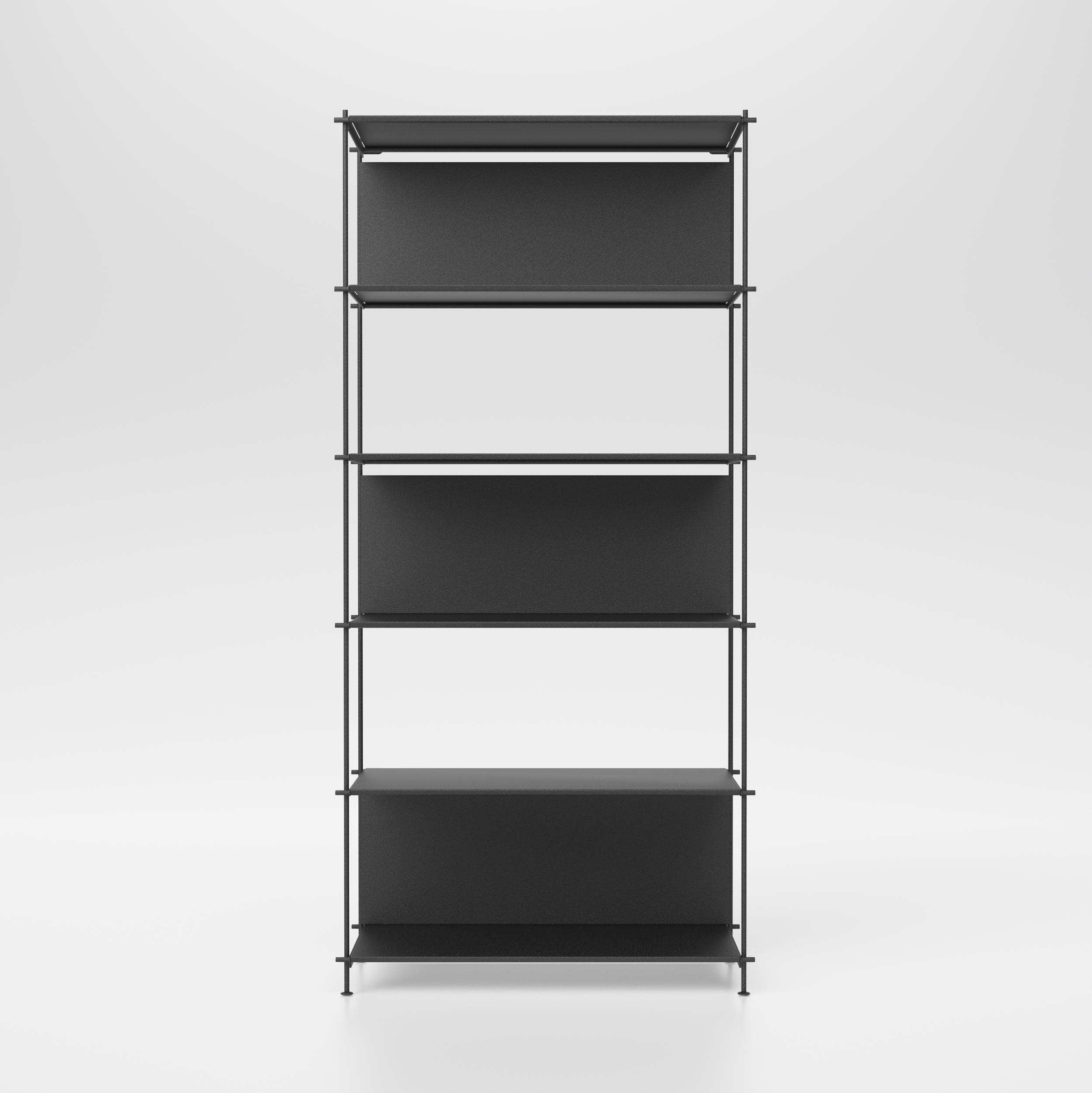 MUSA est la bibliothèque modulaire idéale pour les amateurs de design et de style minimaliste. Très polyvalente, elle peut être placée contre un mur ou au centre d'une pièce, servant ainsi de séparation. Sa structure modulaire est entièrement réalisée en acier, avec des montants latéraux en acier rond massif de 12 mm de diamètre et des panneaux arrière en tôle d'acier, tous deux revêtus d'une élégante finition sablée. Ce système permet de créer des compositions parfaitement adaptées à vos besoins en combinant des montants latéraux de quatre hauteurs différentes (202, 126, 88 et 50 cm) et des étagères disponibles en plusieurs dimensions : 43, 58 et 88 cm. Ces dernières sont également proposées dans divers matériaux : acier peint avec la même finition sablée que la structure, ou stratifié écologique de 12 mm avec des finitions satinées ou texturées. Les pieds en acier sont réglables en hauteur pour compenser les irrégularités du sol.
