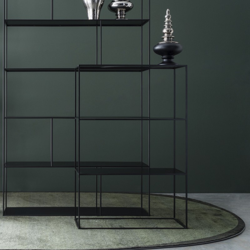 Buffet 80 en métal épaisseur 10 mm avec étagères intégrées montées sans système de fixation apparent. Peinture époxy anthracite. Madia 80 est un meuble raffiné, caractérisé par un design essentiel et des lignes modernes.