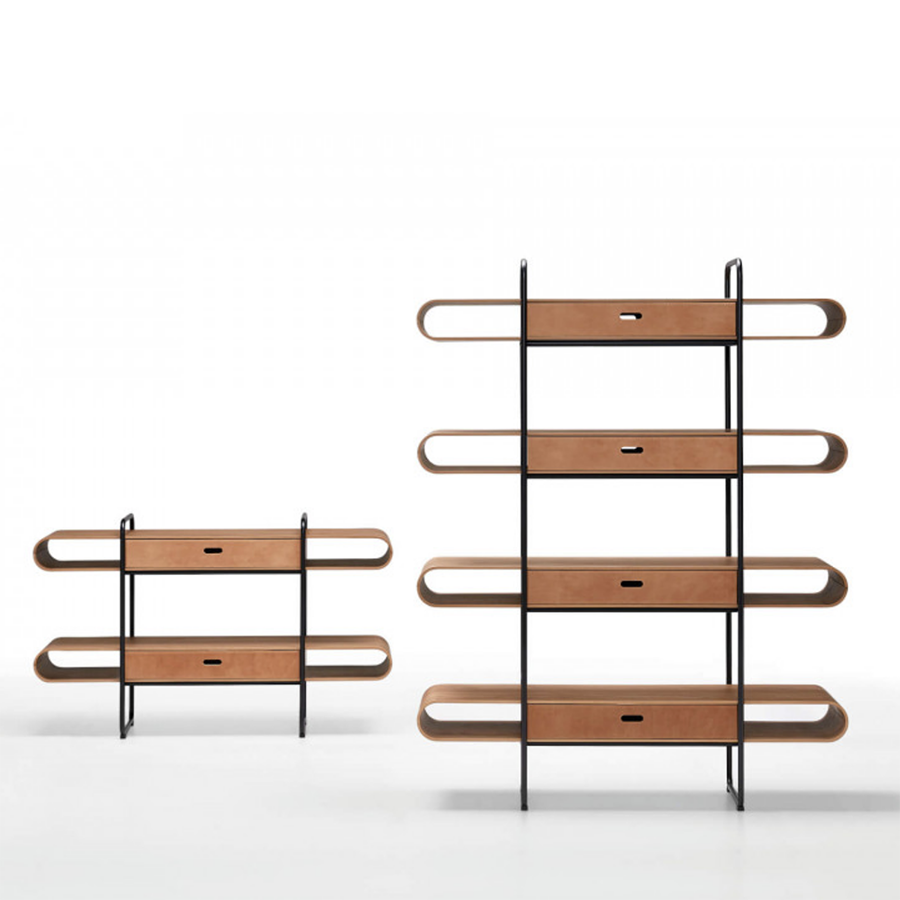 La collection de bibliothèques Apelle est composée de quatre modèles de hauteurs différentes, allant d'un seul tiroir jusqu'à quatre.