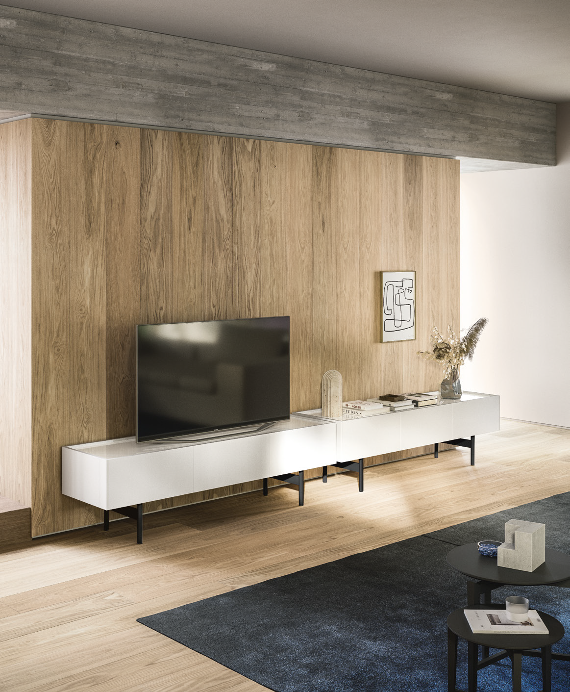 HORIZON est un grand meuble de rangement, parfait pour un espace salle à manger/salon spacieux et raffiné.