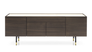 Une collection de buffets sur pieds métalliques au design horizontal affirmé. Disponibles en différentes tailles et configurations de portes et de tiroirs, les buffets Horizon bénéficient d'un système d'ouverture unique sans poignée grâce à leur profil périphérique surélevé pour accueillir le plateau en verre ou en céramique.