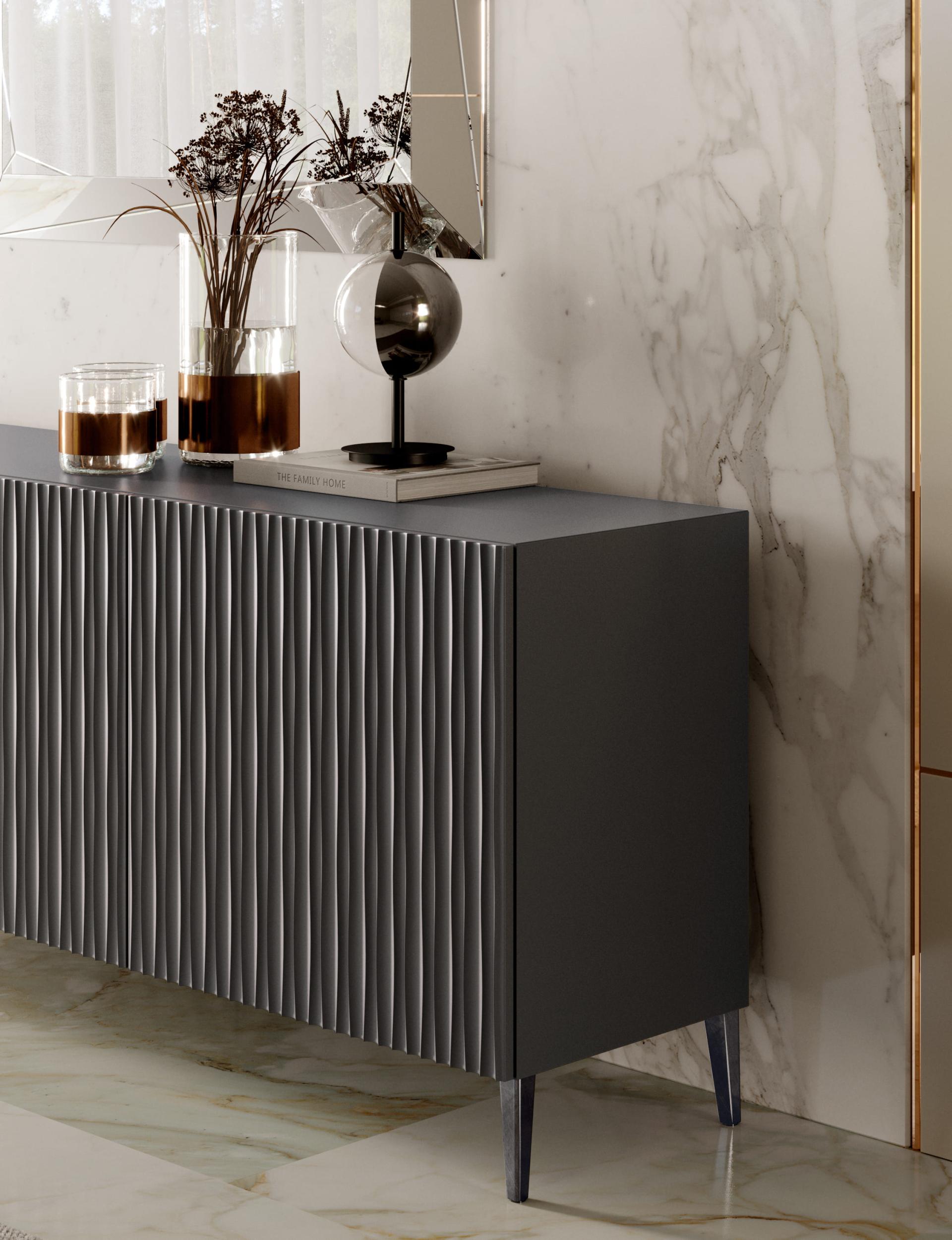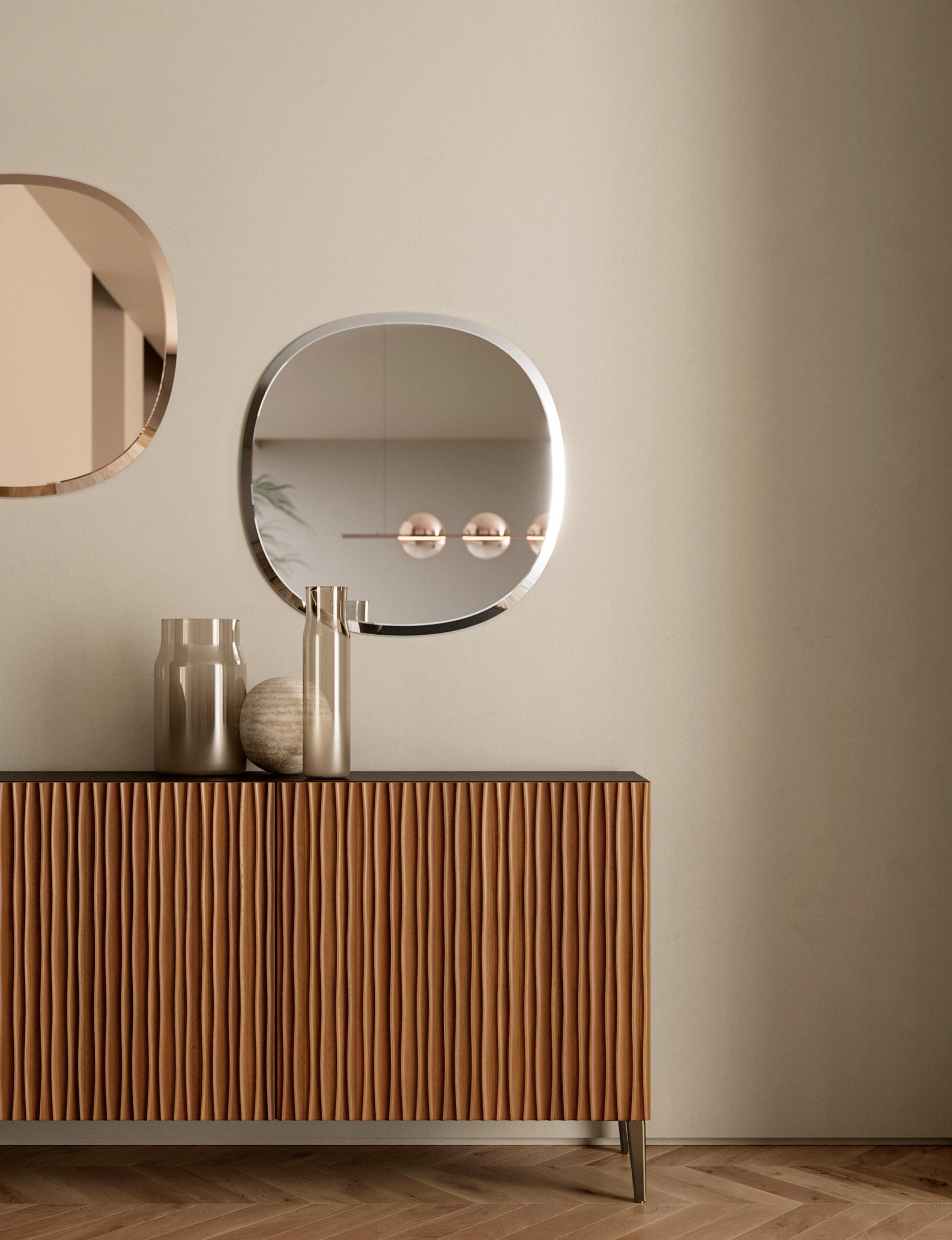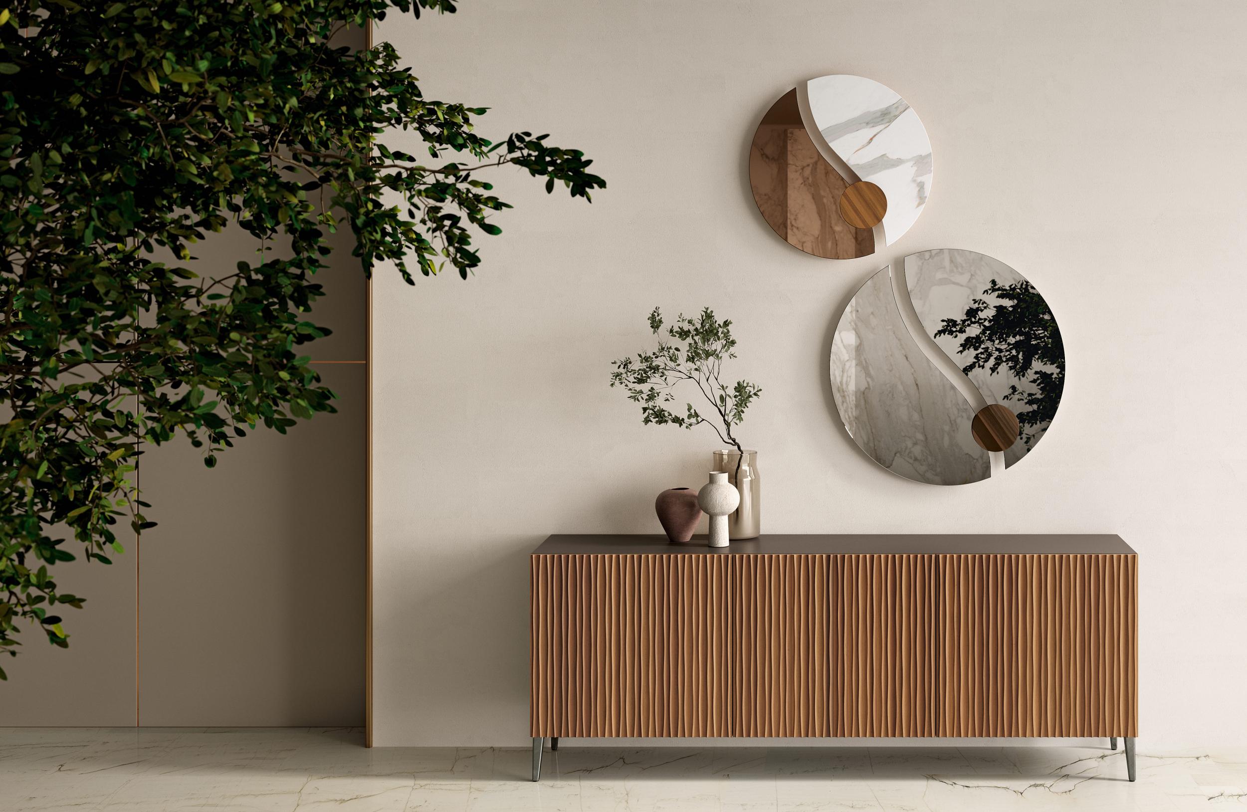 Le buffet Musa est une proposition pour l'espace de vie qui se distingue par les lignes douces et harmonieuses qui le composent. Possibilité d'être surélevé du sol avec des pieds en acier laqué, ou posé au sol. structure et socle en bois disponibles en différentes finitions, étagères en verre transparent.
