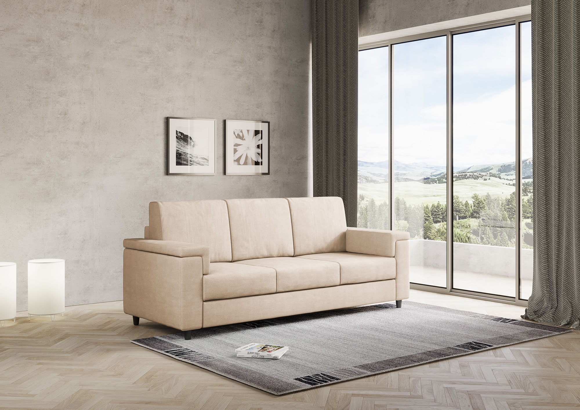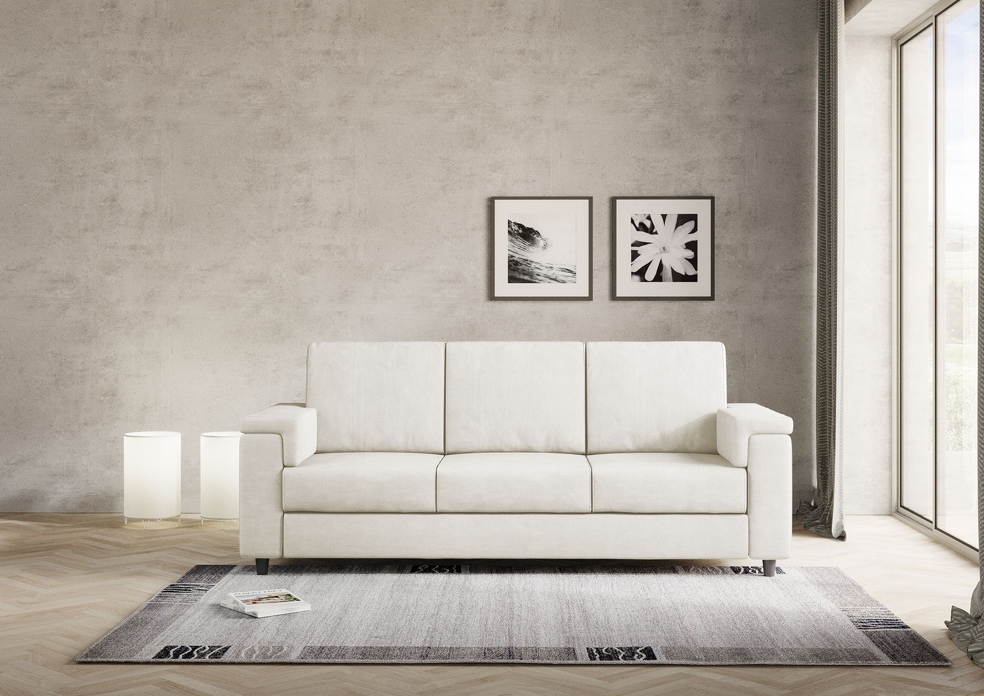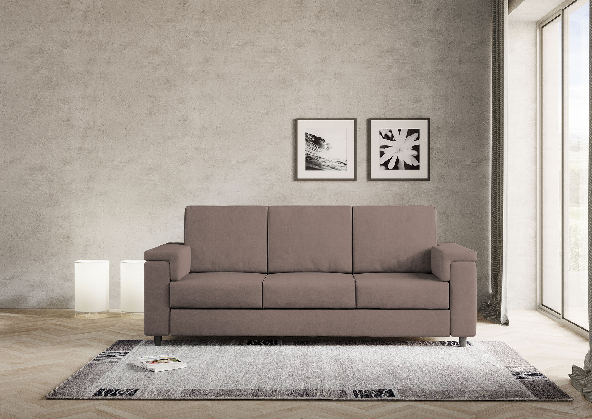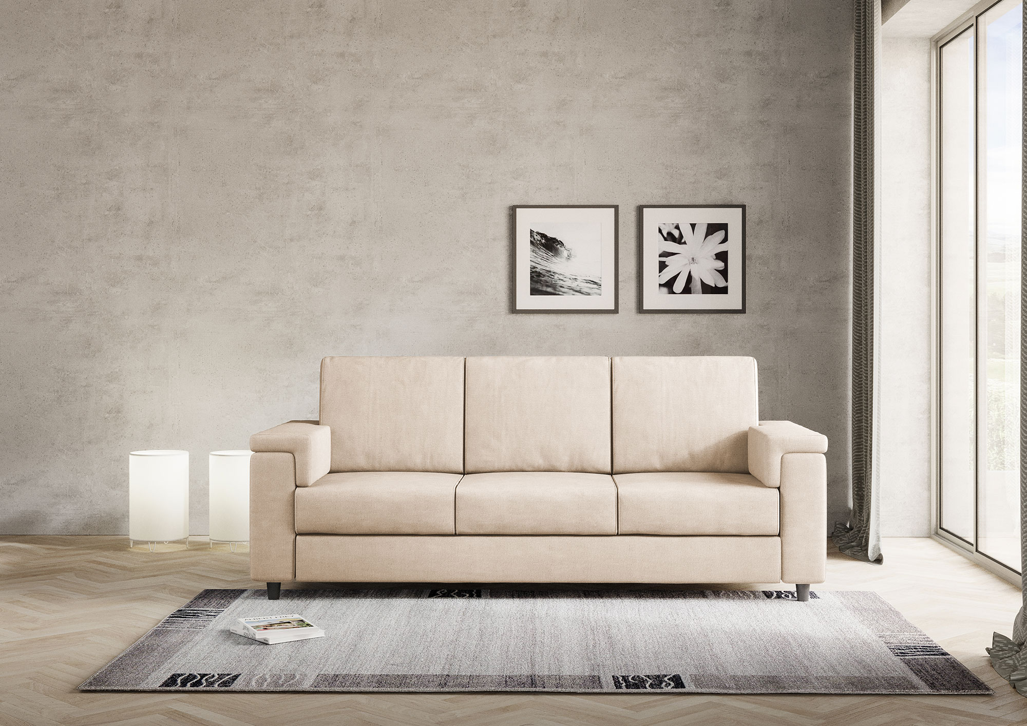 Housse entièrement déhoussable, assise en contact avec le dossier qui assure un confort unique. Hauteur d'assise depuis le sol : 45cm. Hauteur des pieds en bois : 8cm. Détails du tissu : 100% polyester, déperlant, grammage environ 320g/m2. Instructions de lavage : max 30°, repassable à basse température, nettoyage à sec, pas de sèche-linge, ne pas blanchir. Les taches causées par les liquides peuvent être simplement éliminées avec un chiffon humide. Détails techniques de l'assise : polyuréthane expansé densité : 24,6 Kg/m3, capacité portante 40% 3,8 KPa Din 53577, contrainte de pression 40% 150N Din 53576/B, déformation permanente 50% 3% Din 53572. Détails techniques du dossier : expansé densité du polyuréthane : 14,7 Kg/m3, résistance à la compression 40% 1,5 KPa UNI EN ISO 3386-1, rendement élastique : 38 UNI EN ISO 8307.