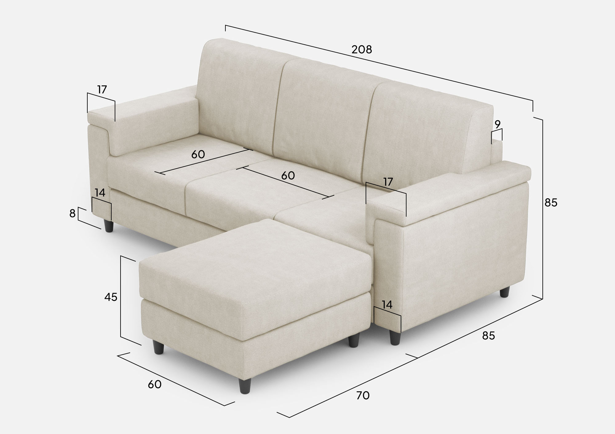 Ajoutez une touche de style et de confort à votre salon avec notre canapé 3 places, complété par un pouf pratique. Avec un design élégant et confortable, ce canapé est le complément parfait pour créer un environnement accueillant, sophistiqué et fonctionnel dans votre maison. L'assise du canapé garantit un confort exceptionnel grâce à la répartition uniforme du poids sur le coussin, assurée par le contact avec le dossier. Vous pourrez vous détendre confortablement et profiter d'agréables moments de repos sans aucune gêne. Fabriqué avec des matériaux de haute qualité, notamment une structure robuste et un rembourrage en mousse haute densité, ce canapé offre une durabilité et un confort à long terme. Vous pourrez profiter de votre canapé pendant des années sans compromettre son apparence élégante et ses performances confortables. Le design élégant et moderne du canapé s'adapte facilement à n'importe quel environnement et style d'ameublement. Les lignes épurées et le look minimaliste ajoutent une touche de sophistication à votre salon. De plus, les couleurs des revêtements sont polyvalentes et faciles à assortir avec les autres meubles présents. Le pouf, avec le même revêtement que le canapé, peut être positionné librement pour servir de repose-pieds ou de siège supplémentaire lorsque vous recevez des invités, offrant ainsi une plus grande flexibilité et hospitalité. Il est équipé de fixations simples et invisibles qui permettent de le verrouiller sur l'assise souhaitée, garantissant ainsi sa stabilité. Alternativement, vous pouvez le déplacer rapidement vers différentes positions, en fonction de vos besoins et de l'espace disponible. Le canapé 3 places avec pouf Marrak est le choix idéal pour ceux qui recherchent un maximum de confort, de style et de praticité dans leur maison. En l'ajoutant à votre espace, vous pouvez créer un environnement accueillant pour vous, votre famille et vos amis. Profitez d'agréables moments de détente et de convivialité, sachant que vous disposez d'un canapé de qualité qui vous accompagnera dans le temps.