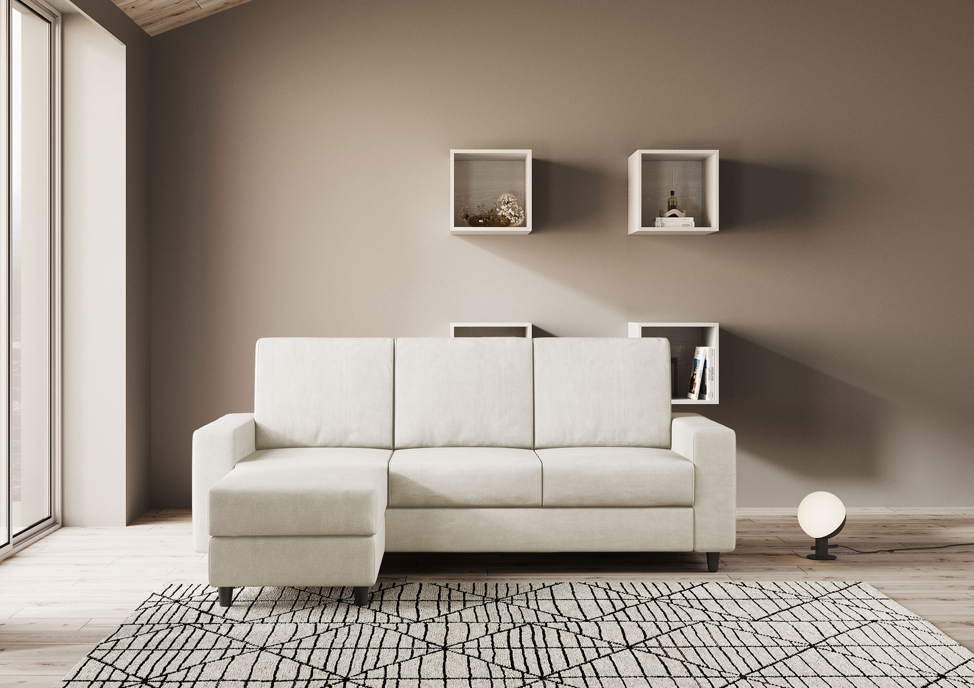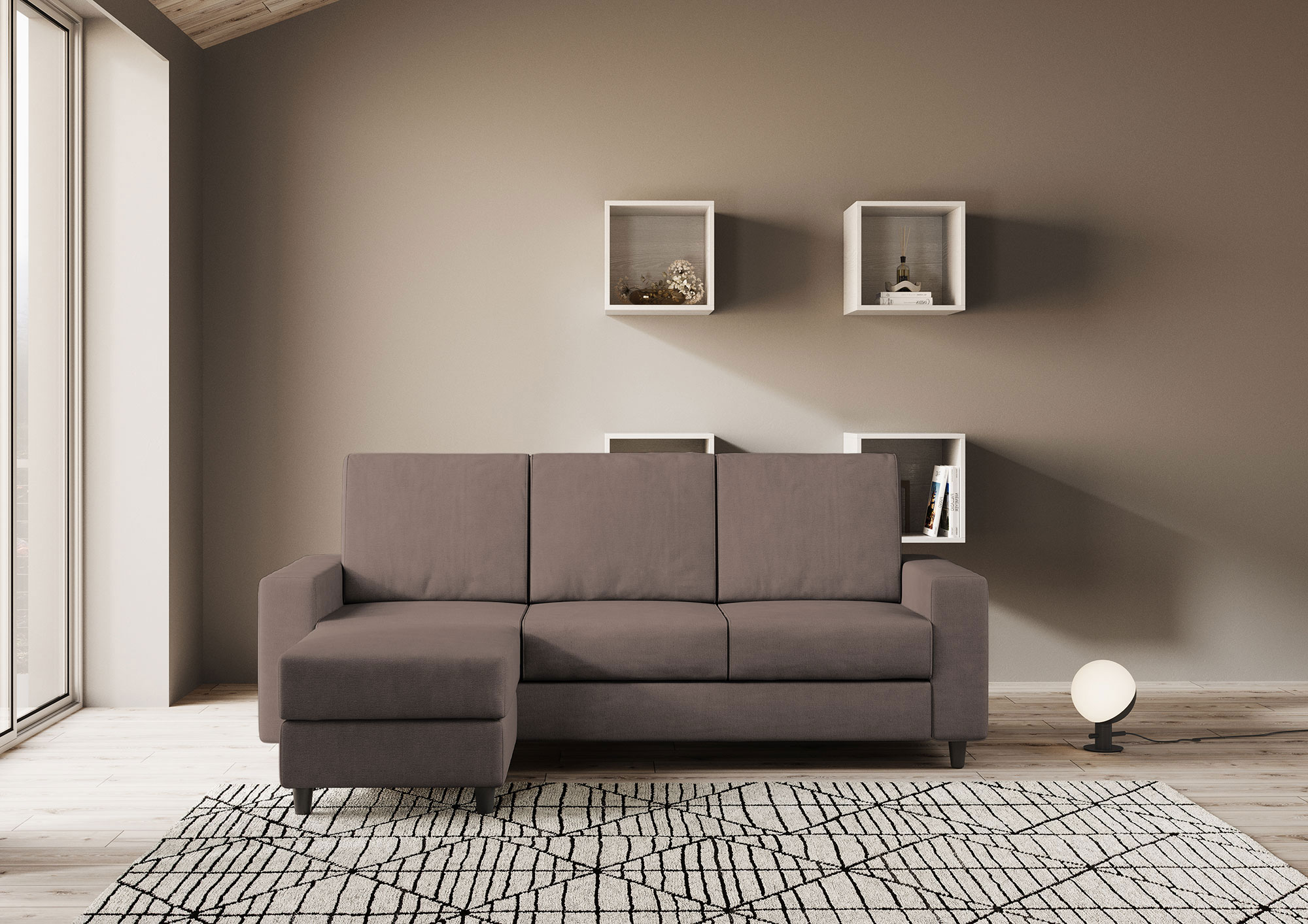 Housse entièrement déhoussable, assise en contact avec le dossier qui assure un confort unique. Hauteur d'assise depuis le sol : 45cm. Hauteur des pieds en bois : 8cm. Détails du tissu : 100% polyester, déperlant, grammage environ 320g/m2. Instructions de lavage : max 30°, repassable à basse température, nettoyage à sec, pas de sèche-linge, ne pas blanchir. Les taches causées par les liquides peuvent être simplement éliminées avec un chiffon humide. Détails techniques de l'assise : polyuréthane expansé densité : 24,6 Kg/m3, capacité portante 40% 3,8 KPa Din 53577, contrainte de pression 40% 150N Din 53576/B, déformation permanente 50% 3% Din 53572. Détails techniques du dossier : expansé densité du polyuréthane : 14,7 Kg/m3, résistance à la compression 40% 1,5 KPa UNI EN ISO 3386-1, rendement élastique : 38 UNI EN ISO 8307.