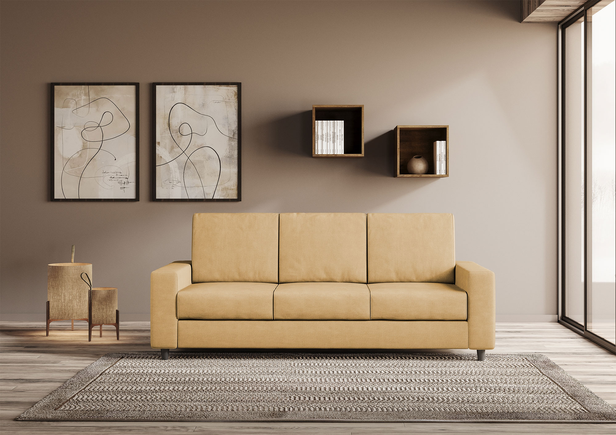 Ajoutez une touche de style et de confort à votre salon avec notre canapé 3 places. Avec un design élégant et confortable, ce canapé est le complément parfait pour créer un environnement chaleureux et élégant dans votre maison. L'assise du canapé garantit un confort exceptionnel grâce à la répartition uniforme du poids sur le coussin, assurée par le contact avec le dossier. Vous pourrez vous détendre confortablement et profiter d'agréables moments de repos sans aucune gêne. Fabriqué avec des matériaux de haute qualité, notamment une structure robuste et un rembourrage en mousse haute densité, ce canapé offre une durabilité et un confort à long terme. Vous pourrez profiter de votre canapé pendant des années sans compromettre son apparence élégante et ses performances confortables. Le design élégant et moderne du canapé s'adapte facilement à n'importe quel environnement et style d'ameublement. Les lignes épurées et le look minimaliste ajoutent une touche de sophistication à votre salon. De plus, les couleurs des revêtements sont polyvalentes et faciles à assortir avec les autres meubles présents. Le canapé 3 places Sakar est le choix idéal pour ceux qui recherchent un maximum de confort et de style dans leur maison. En l'ajoutant à votre espace, vous pouvez créer un environnement accueillant pour vous, votre famille et vos amis. Profitez d'agréables moments de détente et de convivialité, sachant que vous disposez d'un canapé de qualité qui vous accompagnera dans le temps.