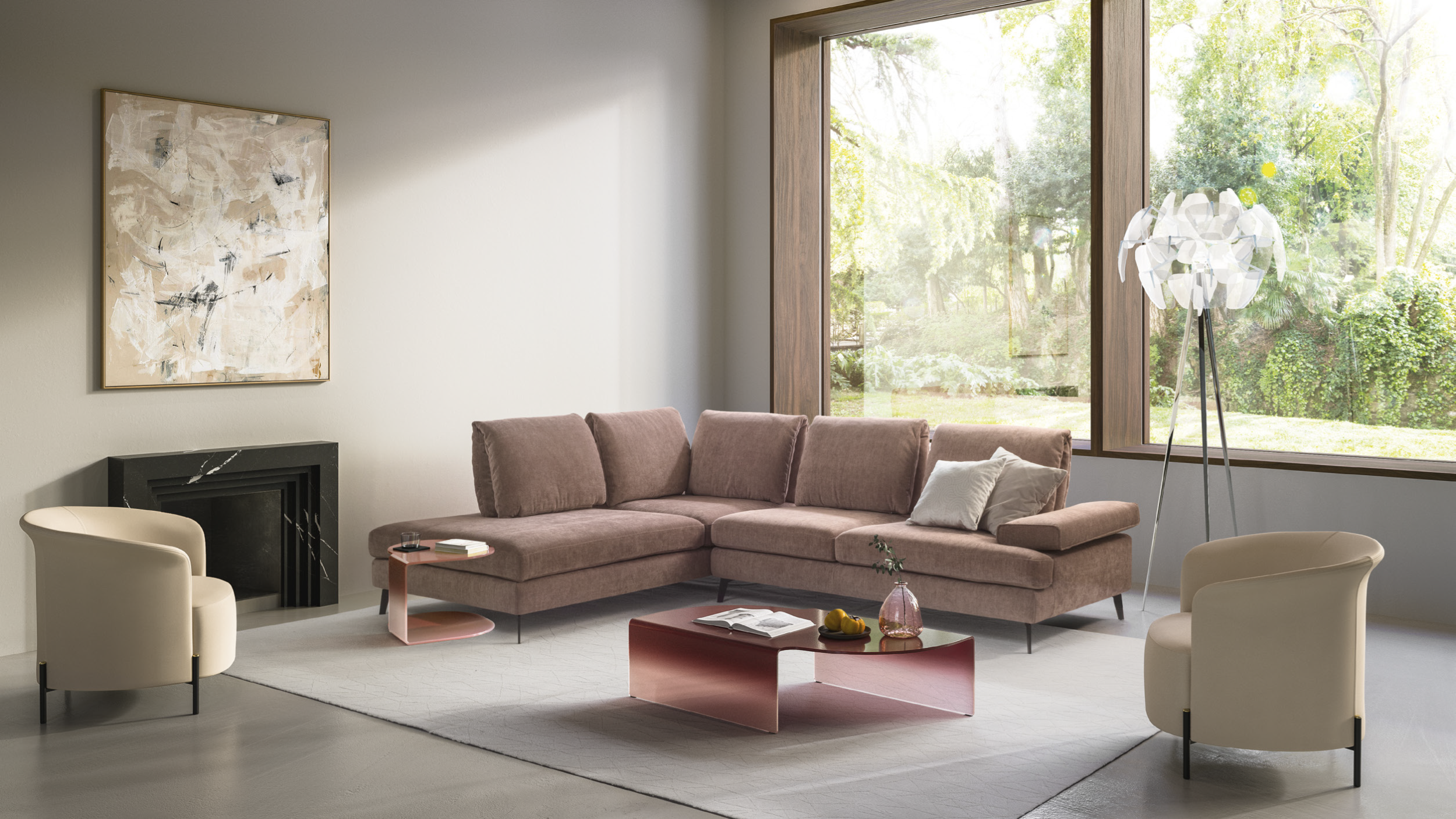 Esthétique minimale aux lignes épurées et essentielles, mais aux formes douces et enveloppantes, Landa se caractérise par son élégance, mais aussi par un détail caché qui devient l'élément précieux : le mouvement qui permet d'obtenir le confort souhaité grâce à l'inclinaison parfaite du coussin. , accoudoir et dossier.