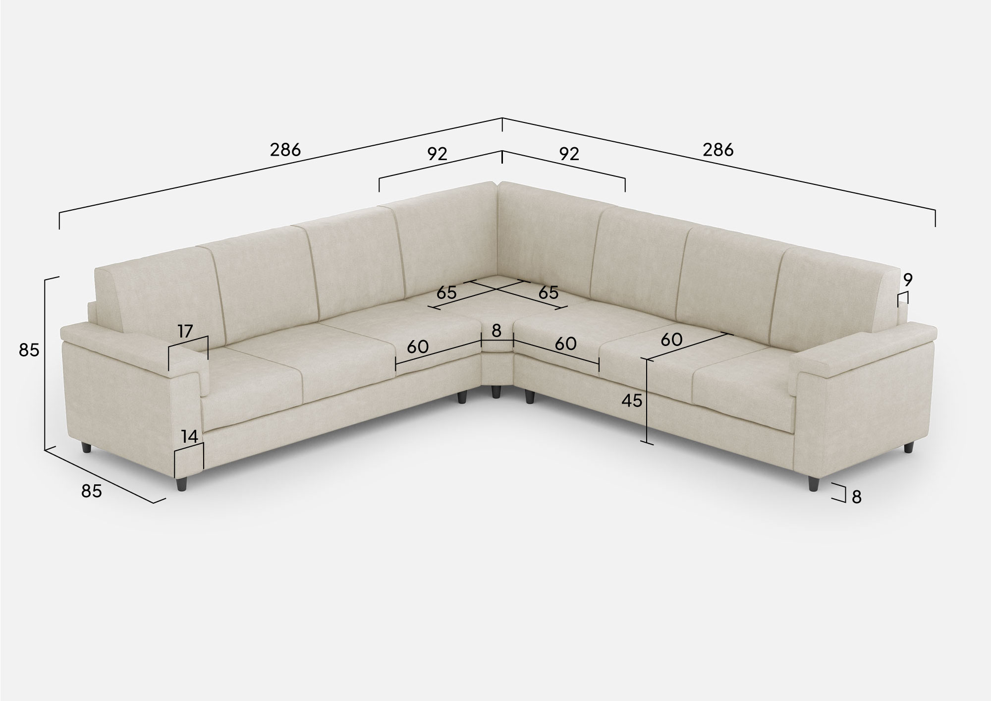 Housse entièrement déhoussable, assise en contact avec le dossier qui assure un confort unique. Hauteur d'assise depuis le sol : 45cm. Hauteur des pieds en bois : 8cm. Détails du tissu : 100% polyester, déperlant, grammage environ 320g/m2. Instructions de lavage : max 30°, repassable à basse température, nettoyage à sec, pas de sèche-linge, ne pas blanchir. Les taches causées par les liquides peuvent être simplement éliminées avec un chiffon humide. Détails techniques de l'assise : polyuréthane expansé densité : 24,6 Kg/m3, capacité portante 40% 3,8 KPa Din 53577, contrainte de pression 40% 150N Din 53576/B, déformation permanente 50% 3% Din 53572. Détails techniques du dossier : expansé densité du polyuréthane : 14,7 Kg/m3, résistance à la compression 40% 1,5 KPa UNI EN ISO 3386-1, rendement élastique : 38 UNI EN ISO 8307.