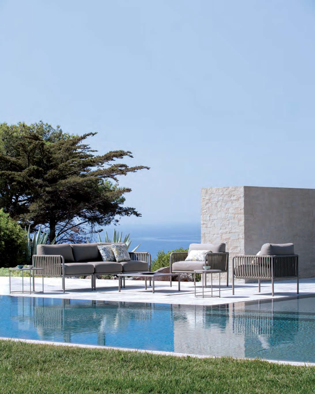 Élégant et fonctionnel, le canapé trois places Key West est disponible dans de nombreuses finitions : en effet, il est possible de choisir la couleur de la structure en métal, de la corde et des coussins.