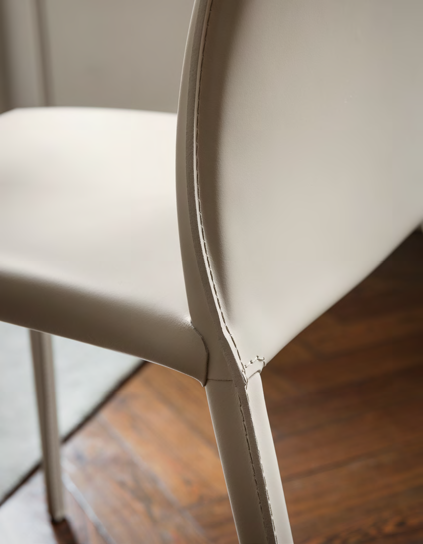 Disponible dans des couleurs naturelles raffinées avec des coutures assorties, AIDA est la chaise qui meuble la salle à manger avec une personnalité élégante.